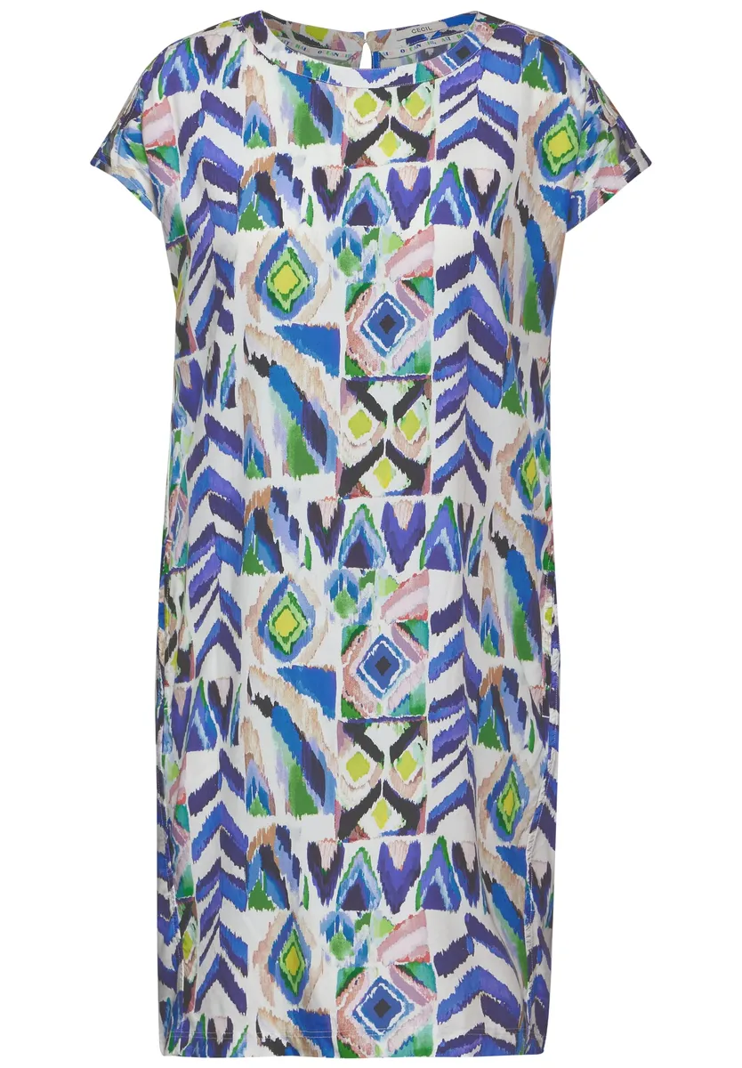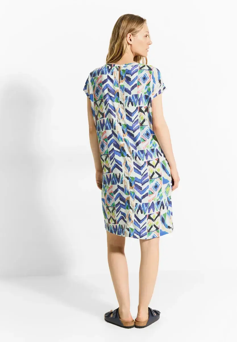 Женское летнее платье CECIL с принтом, вырез «лодочка» с разрезом и пуговицей, боковые карманы, длина до колена, воздушные разрезы на плечах. Летнее женское платье с принтом от CECIL – модный must-have теплого сезона. Вырез-лодочка, разрез и пуговица придают изделию элегантный вид. Воздушные разрезы на плечах придают платью особую изысканность. Женское платье с разноцветным принтом, вырез «лодочкой» с разрезом и пуговицей, карманы для рук, длина до колена, воздушные разрезы на плечах. Размеры для европейского размера M примерно: длина 96 см, обхват груди 116 см, ширина низа 115 см. Материал: 100% вискоза. Особенности: Изготовлен из вискозы Состав материала: 100% вискозаПримечание о размере: Это изделие больше.Материал: 100% вискоза Инструкция по уходу Отбеливание: Не отбеливать Инструкция по уходу Гладить: Утюжить при умеренной температуре (2 точки) / Гладить при умеренной температуре / Утюжить при умеренной температуре Инструкции по уходу Текстиль уход: Не подвергать чистке (круг - крестик) / Не подвергать химической чистке Инструкции по уходу Сушить: Не сушить в сушильной машине Инструкции по уходу Стирка: деликатный цикл 30°Страна-производитель: INЦелевая группа: женщины