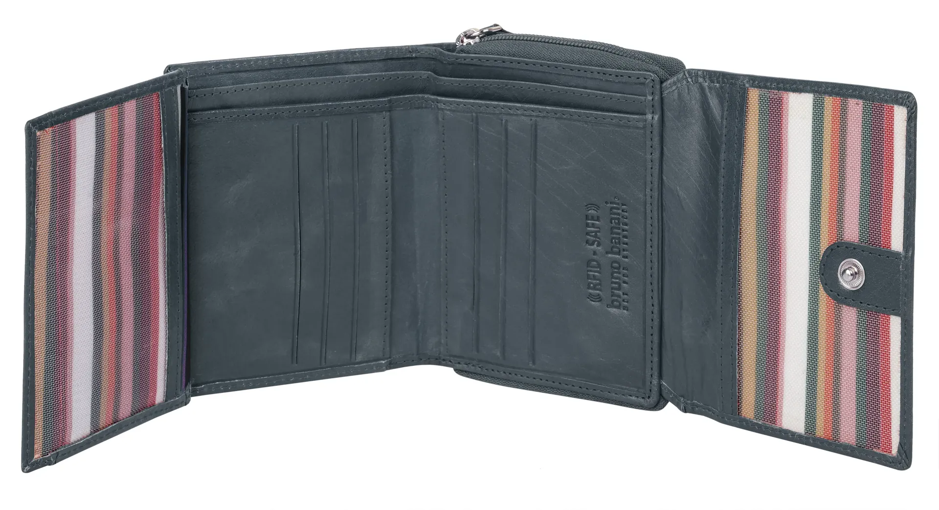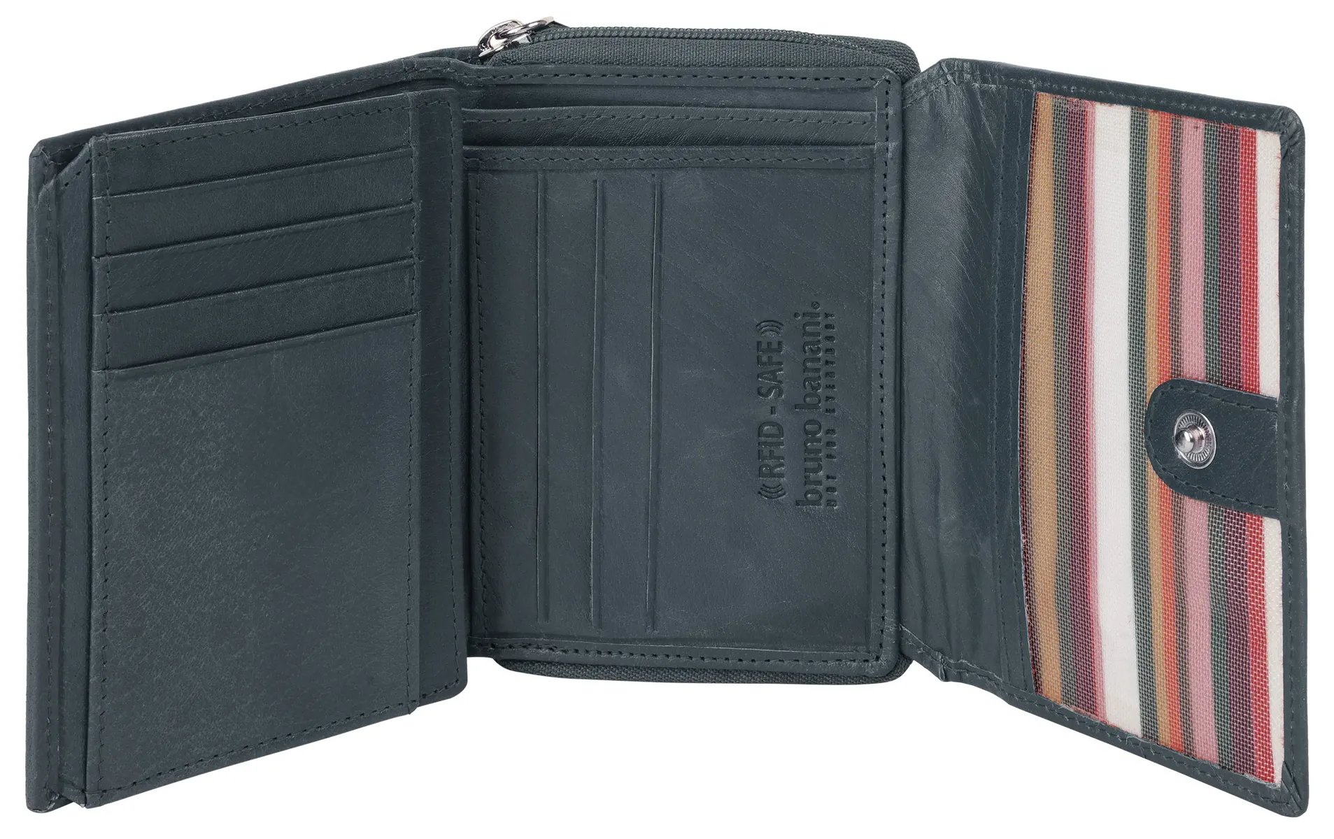 Кожаный кошелек в стиле casual-шик от Bruno Banani. Тиснение спереди придает изделию игривый вид. Внутри кожаного кошелька имеется продуманное расположение отделений для денег и карт. Два смотровых отделения идеально подходят для хранения водительских прав, визитных карточек или даже фотографий ваших близких. Встроенная защита RFID обеспечивает дополнительную безопасность: ваши банковские карты защищены от несанкционированного использования данных путем сканирования.* 100% воловья кожа* 1 отделение для монет на молнии по всему периметру* 2 отделения для банкнот* 10 отделений для карт* 3 накладных кармана* 2 видимых отделения* складывается 3 раз* RFID-защита Несанкционированное использование данных посредством сканирования* Тонкое тиснение логотипа, особенности: Натуральная кожа Дополнение к названию: Натуральная кожа Ширина: 150 Высота: 10 см Глубина: 3 см. Номер вставки Внутри: 3-й номер Отделения для карточек: 2 эхо-страницы: 2. -подходит эхоВес: 0,15 кг Монетное отделение: есть (на молнии)Оптика Поверхность: однотонная - матоваяОбъем: 0,1Формат: альбомный.