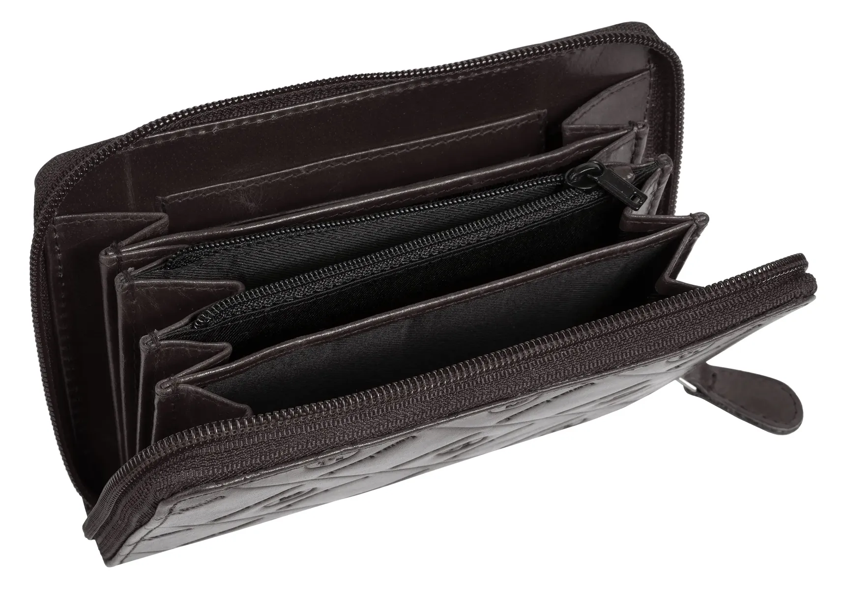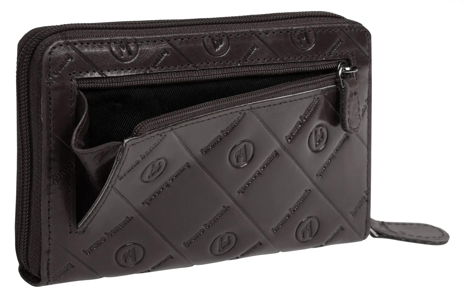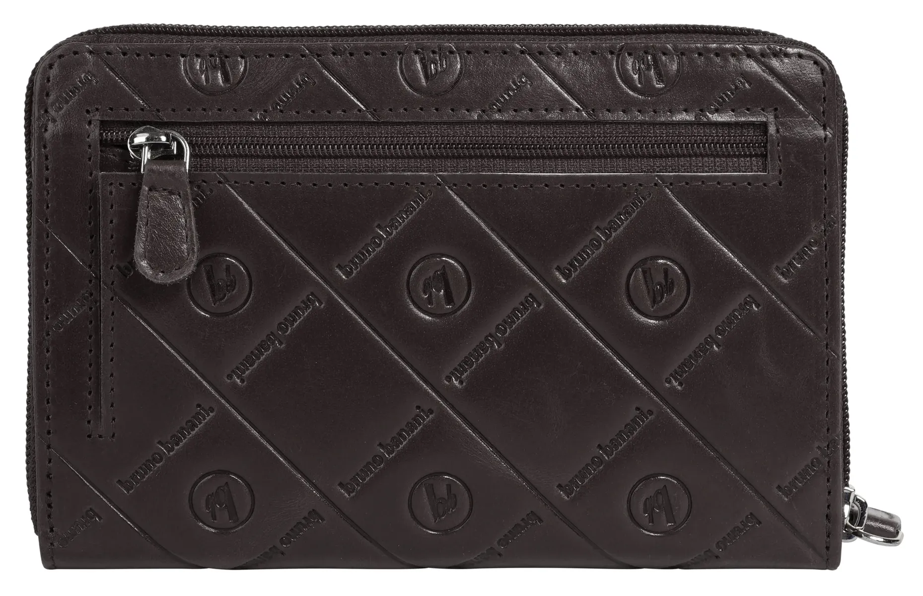 Кожаный кошелек гордо отображает название бренда – bruno Banani представляет стильный аксессуар со сплошным тиснением! Молния по периметру защищает многочисленные отделения для карт внутри. Вы также найдете запираемое отделение для монет и несколько карманов. О ваших деньгах также позаботятся.* 100% воловья кожа* 1 отделение для монет на молнии* 15 отделений для карт* 2 накладных кармана* 1 внешний карман на молнии* молния по всему периметру* тиснение логотипа по всей поверхностиДополнение к названию: натуральная кожаОсобенности: натуральная кожаШирина : 16 смВес: 150Высота: 11 смГлубина: 2 смКоличество внешних карманов: 1Количество внутренних карманов: 2Количество отделений для карточек: 15Внешний материал: 100% воловья кожаРазмер: один размерОсновная застежка: молнияВнутренний материал: кожаВнутренний вид: соответствующий цветВес: 0,15 кгОтделение для монет: да (молния)Вид Поверхность: однотонная - шелковистая блестящаяОбъем: 0,1Формат: Альбомный формат