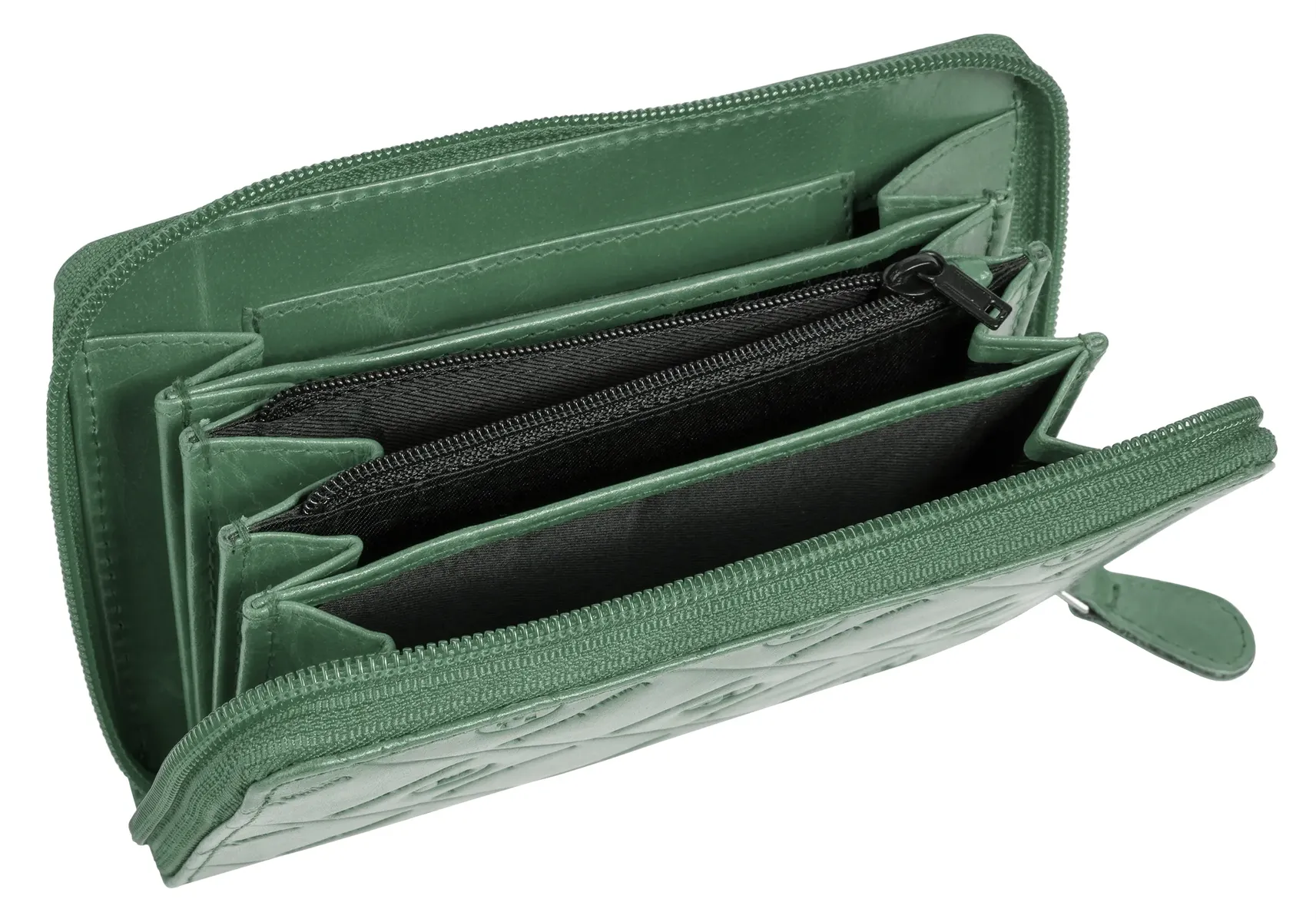 Кожаный кошелек гордо отображает название бренда – bruno Banani представляет стильный аксессуар со сплошным тиснением! Молния по периметру защищает многочисленные отделения для карт внутри. Вы также найдете запираемое отделение для монет и несколько карманов. О ваших деньгах также позаботятся.* 100% воловья кожа* 1 отделение для монет на молнии* 15 отделений для карт* 2 накладных кармана* 1 внешний карман на молнии* молния по всему периметру* тиснение логотипа по всей поверхностиДополнение к названию: натуральная кожаОсобенности: натуральная кожаШирина : 16 смВес: 150Высота: 11 смГлубина: 2 смКоличество внешних карманов: 1Количество внутренних карманов: 2Количество отделений для карточек: 15Внешний материал: 100% воловья кожаРазмер: один размерОсновная застежка: молнияВнутренний материал: кожаВнутренний вид: соответствующий цветВес: 0,15 кгОтделение для монет: да (молния)Вид Поверхность: однотонная - шелковистая блестящаяОбъем: 0,1Формат: Альбомный формат