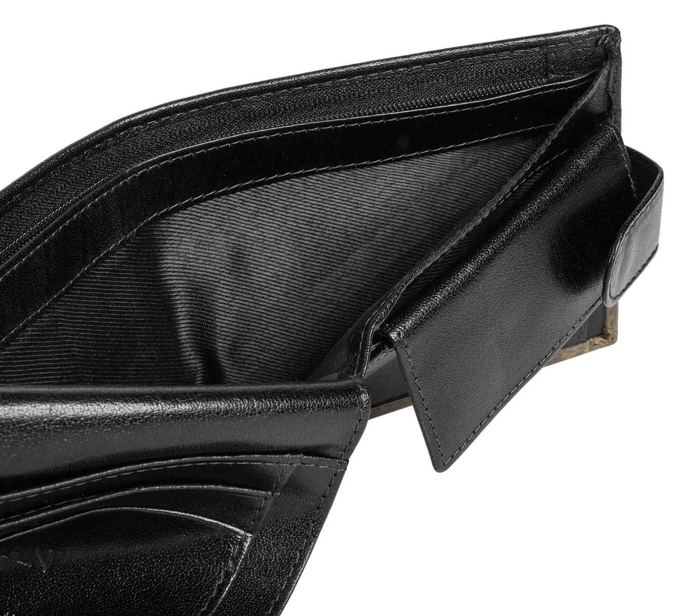 2 отделения для купюр, 6 отделений для карт, 6 вставных отделений и 1 видимое отделение.