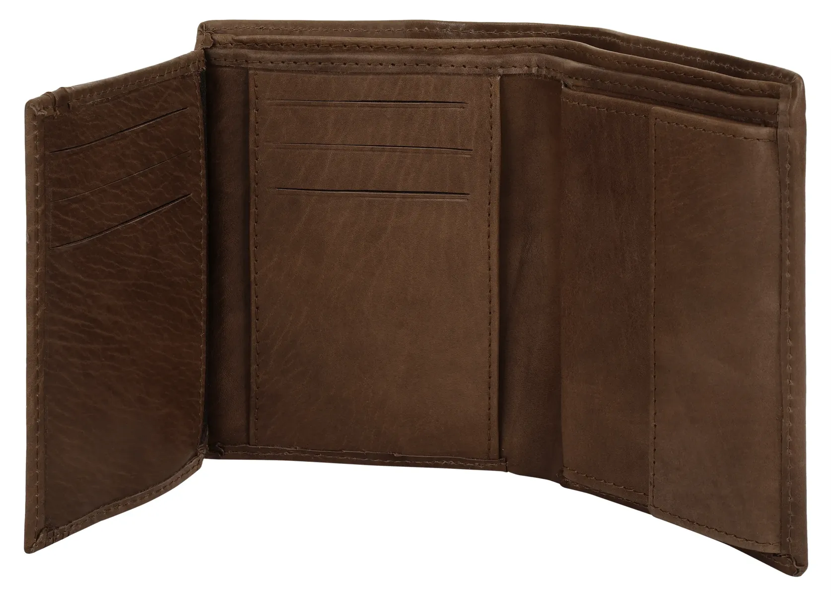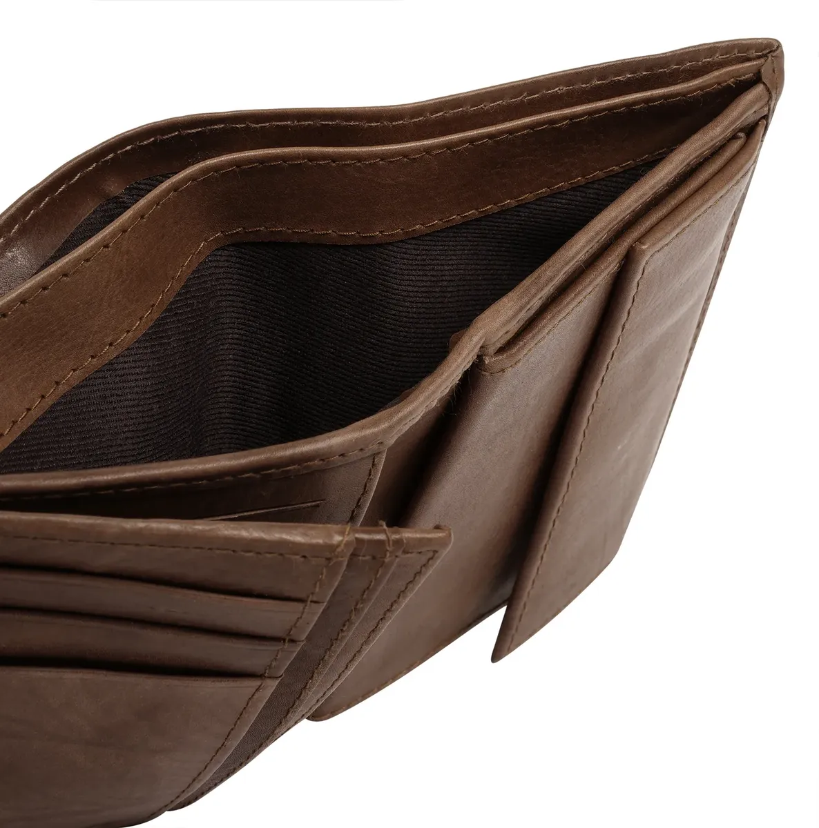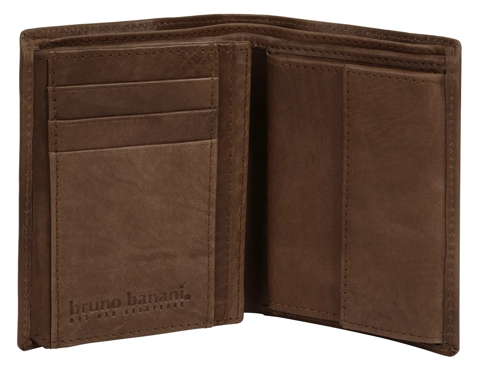 Кожаный кошелек от Bruno Banani – проверенная классика. Двойной складной кошелек имеет практичную внутреннюю планировку, состоящую из различных отделений для карт и слотов, отделений для купюр и отделения для монет. Держите свои карты и наличные в чистоте и порядке. Классический вид кошелька завершает изящный тисненый логотип.* 100% коровья кожа* 1 отделение для монет на кнопке* 2 отделения для купюр* 9 отделений для карт* 6 прорезных карманов* складывается вдвое* изящный тисненый логотип спереди* особенно легкийОсобенности Состав: натуральная кожаТитульное дополнение: натуральная кожаШирина: 9 смВес: 100Высота: 12 смГлубина: 2 смКоличество внутренних карманов: 6Количество отделений для карточек: 9Количество отделений для купюр: 2Наружный материал: 100% воловья кожаРазмер: один размерОсновная застежка: Без застежкиВнутренний цвет: коричневыйМатериал внутренней отделки: КожаВид салона: в тонВес: 0,1 кгОтделение для монет: есть (кнопка)Вид поверхности: однотонный - матовыйОбъем: 0,1Формат: Портретный формат