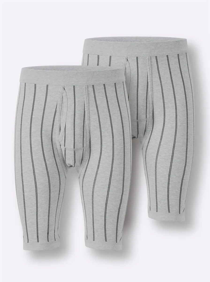 Брюки длиной до колена в двойной упаковке. Влагорегулирующее климатическое волокно обеспечивает постоянную приятную температуру тела. С двойным мягким эластичным поясом и ширинкой. Тонкое ребро. Качество микрофибры. 75% хлопок, 25% полиэстер.