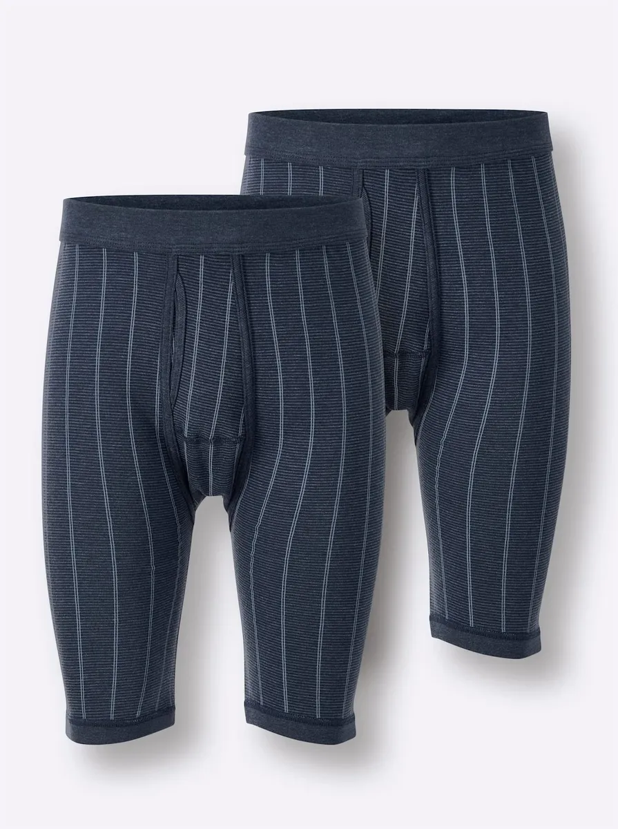 Брюки длиной до колена в двойной упаковке. Влагорегулирующее климатическое волокно обеспечивает постоянную приятную температуру тела. С двойным мягким эластичным поясом и ширинкой. Тонкое ребро. Качество микрофибры. 75% хлопок, 25% полиэстер.