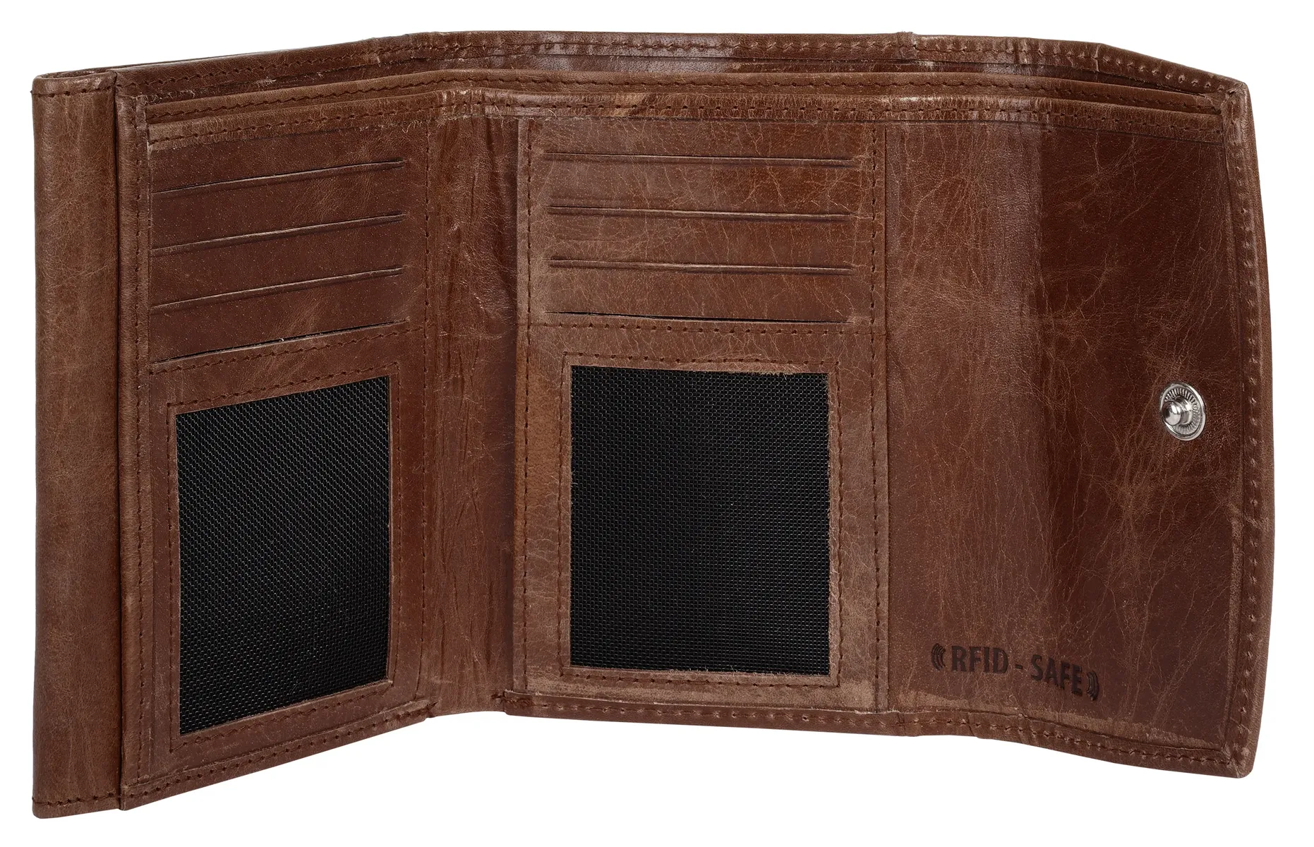 Кожаный кошелек от Chiemsee вас порадует! Благодаря продуманному дизайну, состоящему из продуманных складок и нескольких кнопок, он занимает мало места и помещается даже в карманах куртки и брюк. Широкий выбор отделений всех видов делает кошелек идеальным спутником на каждый день.* 100% коровья кожа* двойная застежка-кнопка* 1 отделение для монет с застежкой-кнопкой* 2 отделения для банкнот* 6 отделений для карт* 2 кармана* 2 видимых кармана* 1 Внешний карман* складывается вдвое* RFID-защита от несанкционированного использования данных посредством сканирования* Незаметное тиснение логотипа спередиОсобенности: натуральная кожаДополнение к названию: натуральная кожаШирина: 10 смВес: 100Высота: 12 смГлубина: 2 смКоличество внешних карманов: 1Количество внутренних карманов: 2Количество Отделения для карт: 6Количество отделений для купюр: 2Количество видимых карманов: 2Внешний материал: 100% воловья кожаРазмер: один размерОсновная застежка: КнопкиВнутренний материал: кожаВнутренний вид: соответствующий цветВес: 0,1 кг Отделение для монет: да (кнопка)Вид Поверхность: однотонная - шелковистая блестящаяОбъем: 0.1Формат: портретный формат