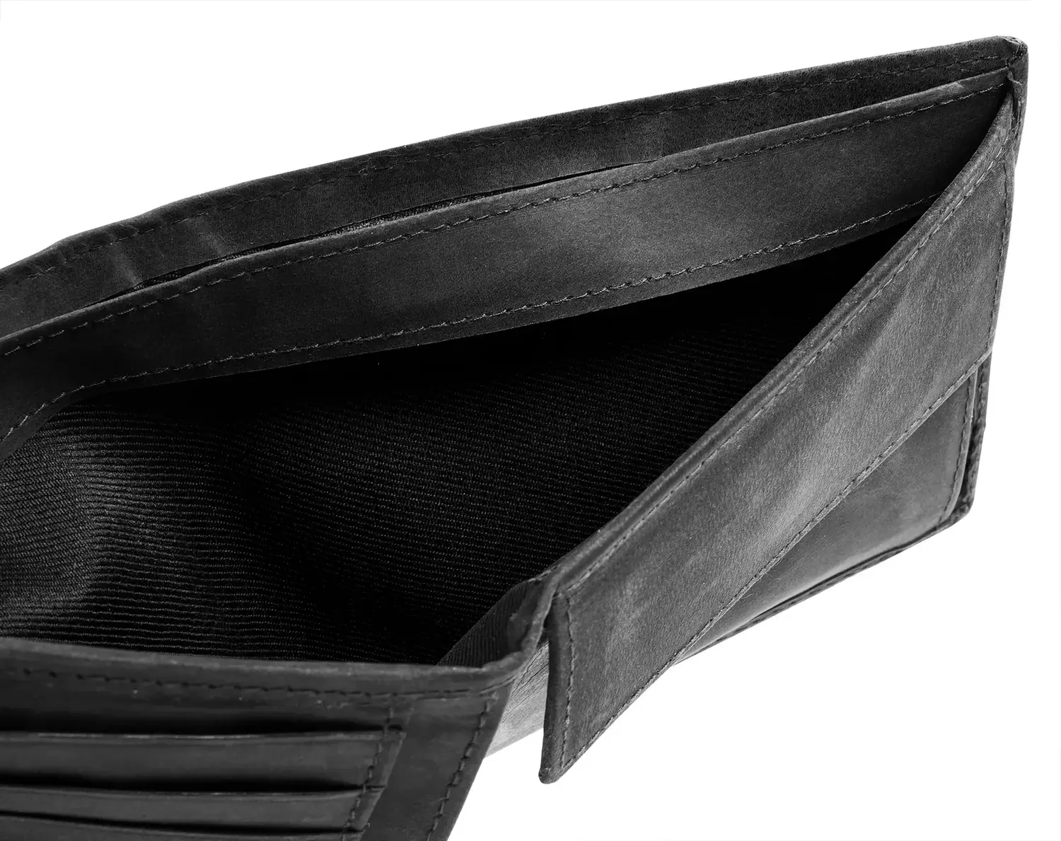 2 отделения для банкнот, 8 карт, 4 слота, 1 отделение для сеток и 1 отделение для монет.