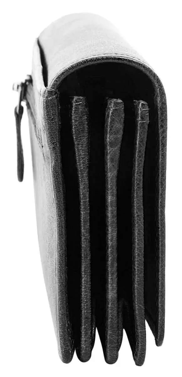 Кожаный кошелек от Cluty предлагает все, что ценят любители практичных кошельков: понятный, всеобъемлющий и элегантный. Всего в 20 слотах достаточно места для карточек, небольших заметок и фотографий. Ваши банковские карты надежно хранятся в кожаном кошельке. Это обеспечивается встроенной защитой RFID, которая защищает ваши данные от неправомерного использования и доступа посредством сканирования!* 100% натуральная кожа* 3 отделения для купюр* 1 отделение для монет на молнии* 14 отделений для карт* 3 видимых отделения* 2 внутренних отделения* 1 внешнее слотОсобенности: натуральная кожаДополнение к названию: натуральная кожаШирина: 17 смВес: 150Высота: 9 смГлубина: 4 смКоличество внешних карманов: 1Количество внутренних карманов: 2Количество отделений для карт: 14Количество отделений для купюр: 3Количество видимых карманов: 3Внешний материал: 100% воловья кожаРазмер : один размерОсновная застежка: кнопкаВнутренний цвет: разноцветныйВнутренний материал: тканьВнутренний вид: контрастный цветВес: 0,15 кг Отделение для монет: да (молния)Оптика Поверхность: однотонная - матоваяОбъем: 0,1Формат: альбомный формат