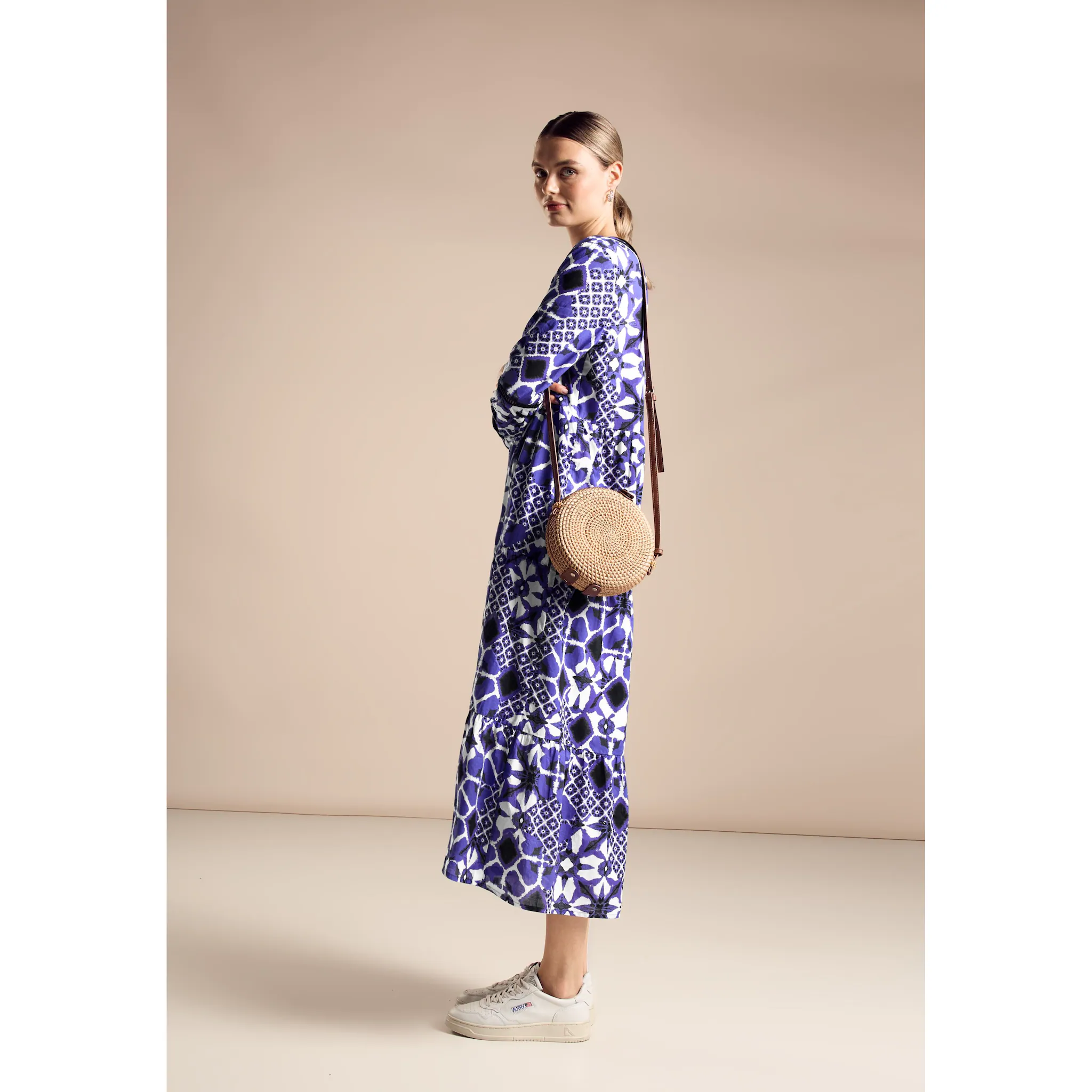 Женское платье-туника Street One с принтом, платье миди из хлопка, круглый вырез горловины с разрезом, рукава 3/4 с манжетами и пуговицей, воздушные элементы вышивки, низ из тонкой вискозной ткани. Женское платье-туника с принтом Street One – очаровательное хлопковое платье миди, которое придаст вашему образу нотку легкости. Округлый вырез с разрезом и рукава 3/4 с манжетами и пуговицами придают модели очаровательный вид. Воздушные элементы вышивки придают платью игривый вид, а подкладка из тонкой вискозы обеспечивает комфорт. Платье миди из хлопка. Круглый вырез с разрезом. Рукава 3/4 с манжетами и пуговицей. Воздушные элементы вышивки. Тонкая вискозная подкладка. Размеры примерно для европейского размера 38: Длина 133 см, обхват груди 108 см, ширина низа 194 см. Материал: 100% хлопокОсобенности: сделано из 100% хлопкаСостав материала: 100% хлопокПримечание по размеру: Это изделие больше по размеру.Материал: 100% хлопок Инструкции по уходу Отбеливание: Не отбеливать Инструкции по уходу Гладить: Утюжить при умеренной температуре (2 точки) / Утюжить при умеренной температуре / Утюжить при умеренной температуре Инструкции по уходу Уход за тканями: Чистка (P) / Чистый / Обычный процесс Инструкции по уходу Сушка: Не сушить в сушильной машине Инструкции по уходу Стирка: деликатный цикл 30°Страна-производитель: INЦелевая группа: женщины