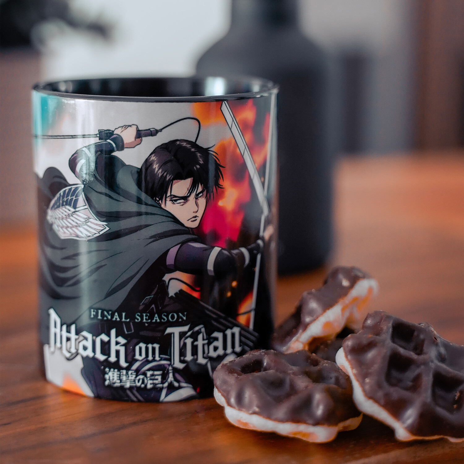 - Вы готовы вывести свой утренний кофе на новый уровень? Тогда официально лицензированная кружка «Атака Титанов» с мотивом Леви Аккермана из 4-го сезона — это то, что вам нужно! Эта кружка, доступная исключительно в Эльбенвальде, является незаменимой вещью для каждого поклонника этой серии. Объём 320 мл идеально подходит для утреннего кофе или чая. И лучшая часть? Его можно мыть в посудомоечной машине и использовать в микроволновой печи! Так чего же вы ждете? Начните свой день с бодрости и силы Леви Акермана!