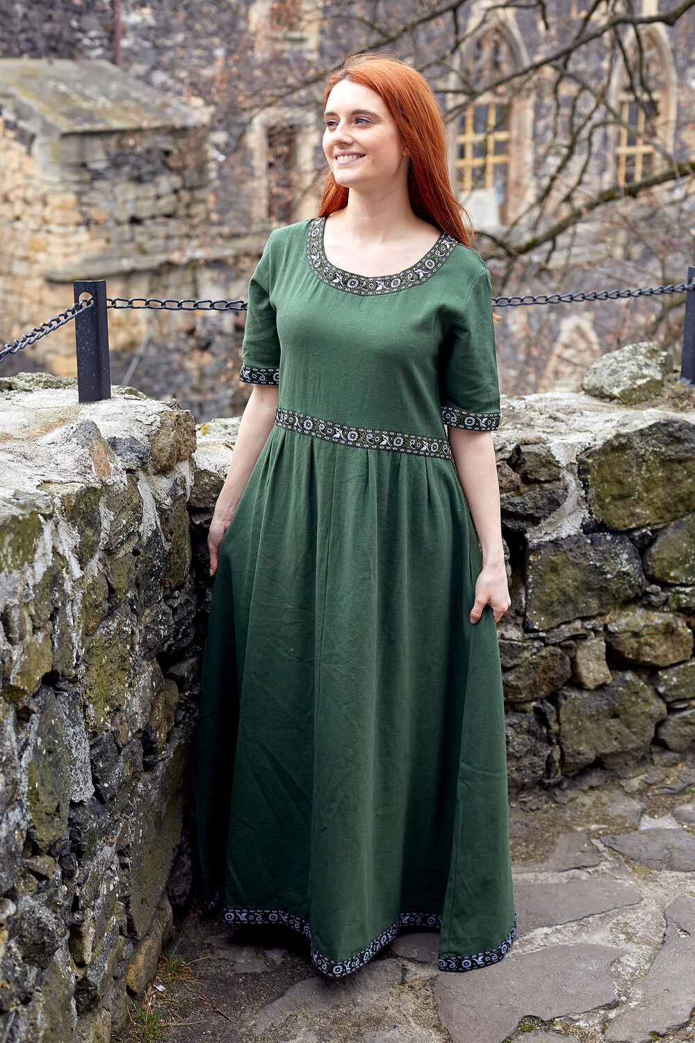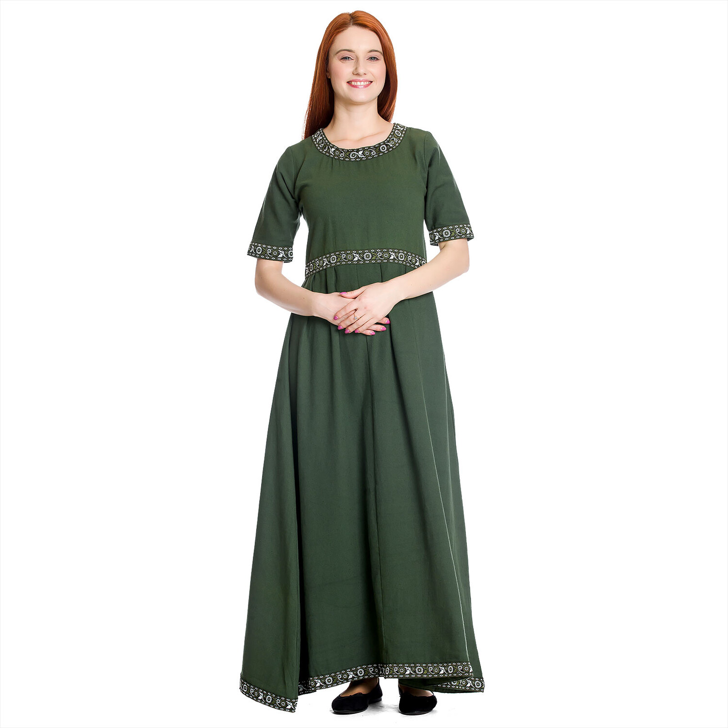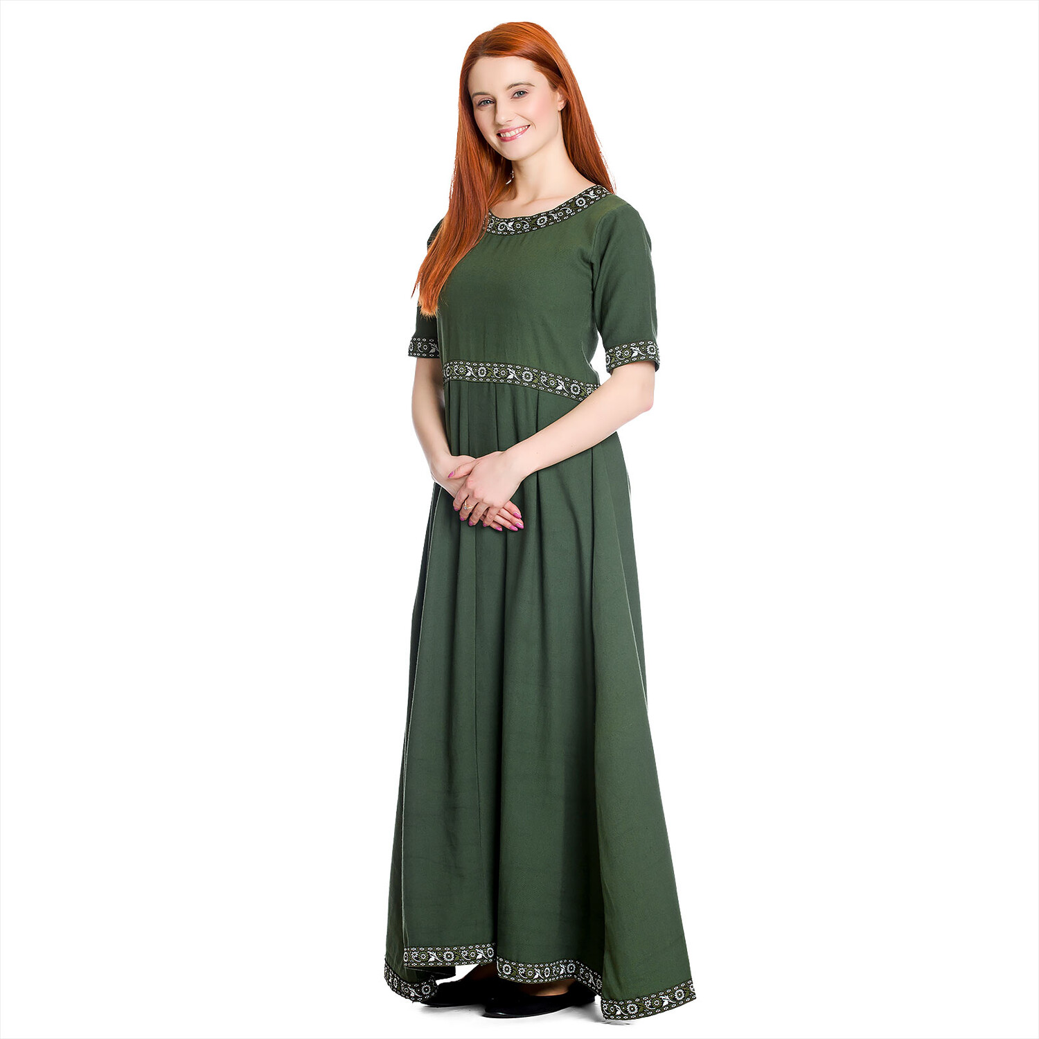 Средневековое платье Эннлин с короткими рукавами зеленое