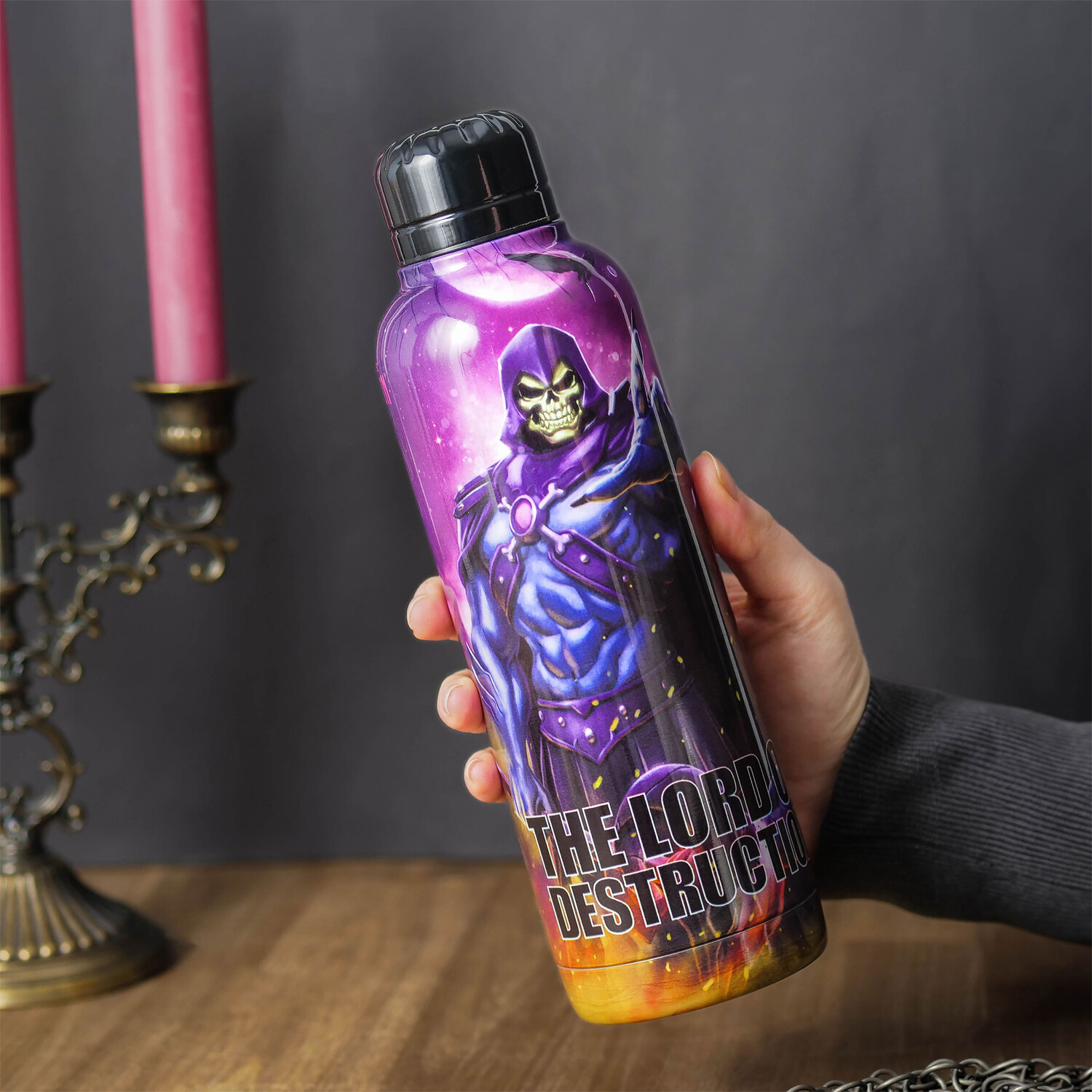 - Готовы героически утолить жажду? С этой официально лицензированной термобутылкой Masters of the Universe вы хорошо оснащены. На нем изображен Скелетор, Повелитель Разрушения, во всей его темной славе. Но не волнуйтесь, это не помешает вам наслаждаться любимыми напитками. Благодаря термофункции и двойным стенкам из нержавеющей стали бутылка сохранит ваши напитки теплыми или холодными по вашему желанию. Завинчивающаяся крышка с уплотнительным кольцом гарантирует отсутствие утечек. Обладая емкостью 515 мл и высотой 25 см, он станет идеальным спутником в течение долгих дней. Обратите внимание, что его нельзя мыть в посудомоечной машине, микроволновой печи или газированных напитках. С этой бутылкой вы станете настоящим хозяином вселенной!