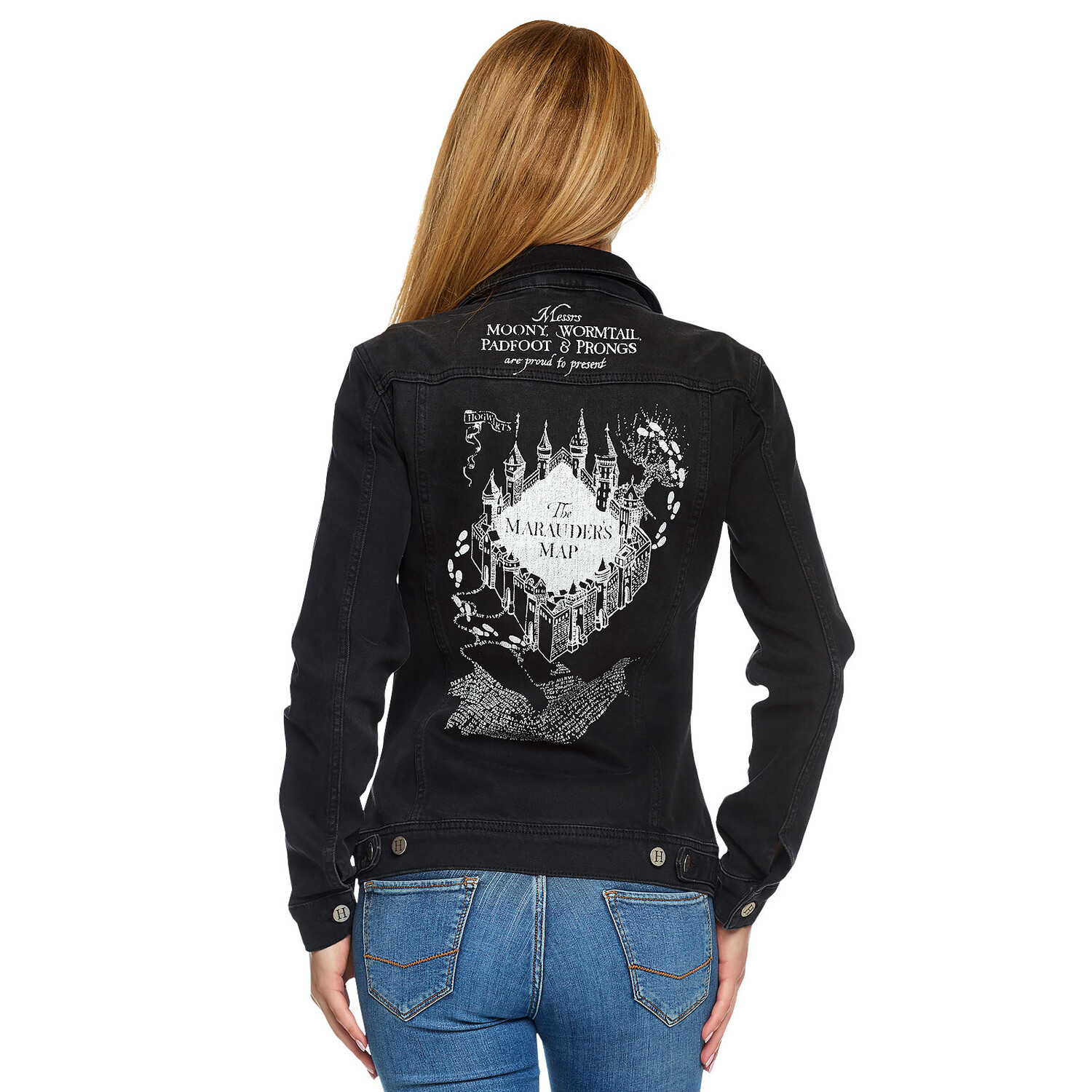 - официально лицензированная женская джинсовая куртка «Marauder's Map» / «Карта мародера» на спине