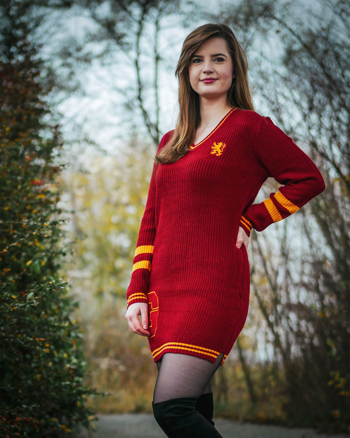 - Готовы ли вы продемонстрировать свою гриффиндорскую гордость? Станьте звездой любой волшебной вечеринки в этом вязаном мини-платье с официальной лицензией «Гарри Поттер». Платье выполнено в ярко-красном и желтом цветах — цветах вашего любимого дома. Маленький вышитый геральдический лев Хогвартса на груди и большой логотип Гриффиндора в виде фетровой нашивки на правом бедре не оставляют сомнений в вашей принадлежности. V-образный вырез и свободный длинный крой позволят вам не только хорошо выглядеть, но и чувствовать себя комфортно. В этом платье вы будете готовы не только к повседневной жизни, но и к любым волшебным встречам. Будь то очередной чемпионат по квиддичу или спонтанная дуэль – вы всегда идеально одеты. Инструкция по уходу: Можно стирать при 30°C!