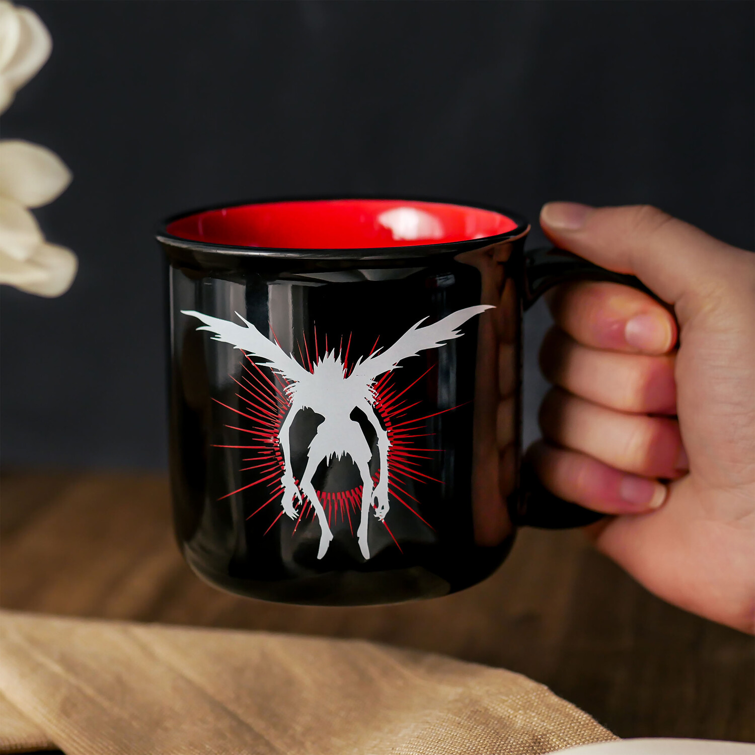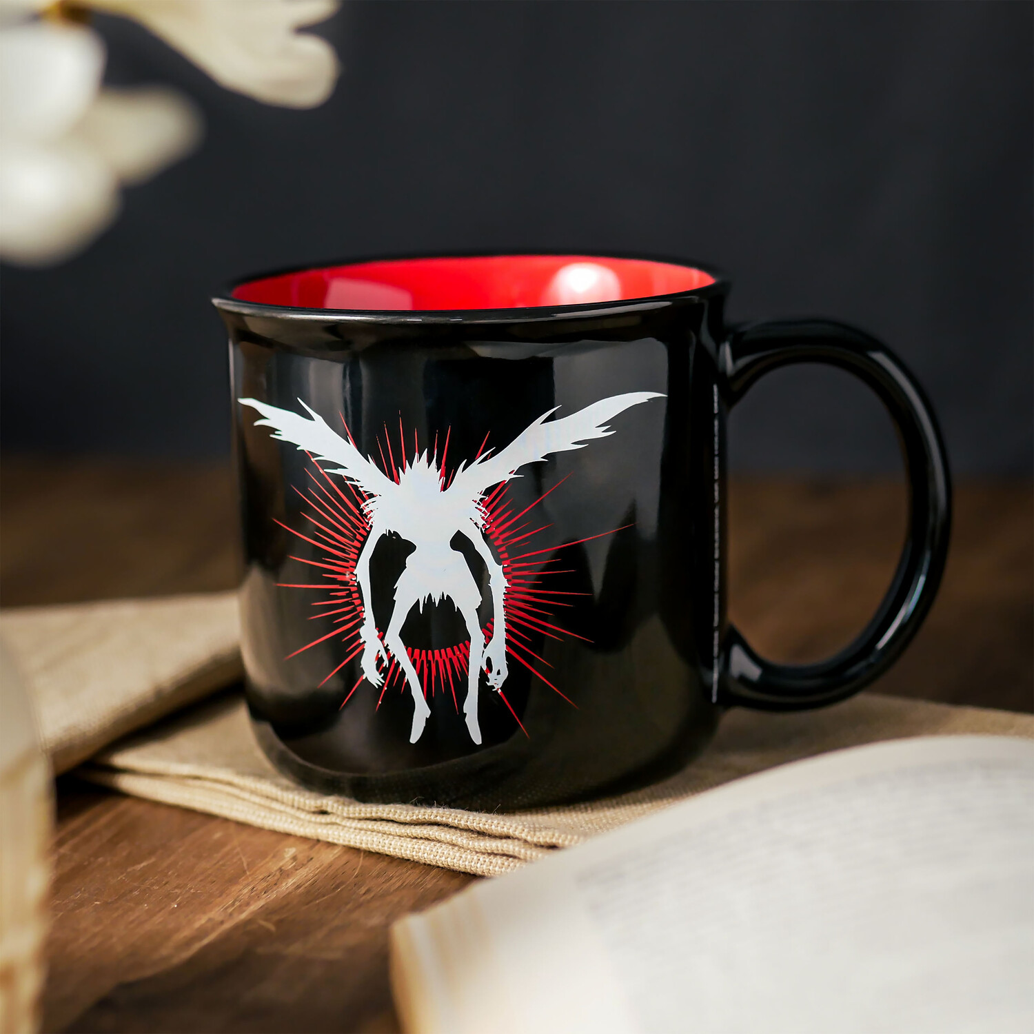 - Готовы ли вы получить заряд кофеина? на следующий уровень довести? Тогда официально лицензированная кружка «Тетрадь смерти» с мотивом Рюка — это то, что вам нужно! Благодаря объему 400 мл в нем достаточно места для утреннего кофе или расслабляющего чая вечером. И самое главное: его можно мыть в посудомоечной машине и использовать в микроволновой печи, что делает его идеальным спутником в повседневной жизни. Чашка черная с красной внутренней частью, как и сердце Рюка. Эта кружка с логотипом «Тетради смерти» и ухмыляющимся лицом Рюка заставит ваших друзей позеленеть от зависти. Так чего же вы ждете? Получите кружку «Тетрадь смерти» прямо сейчас и наслаждайтесь напитками совершенно по-новому, мрачно!