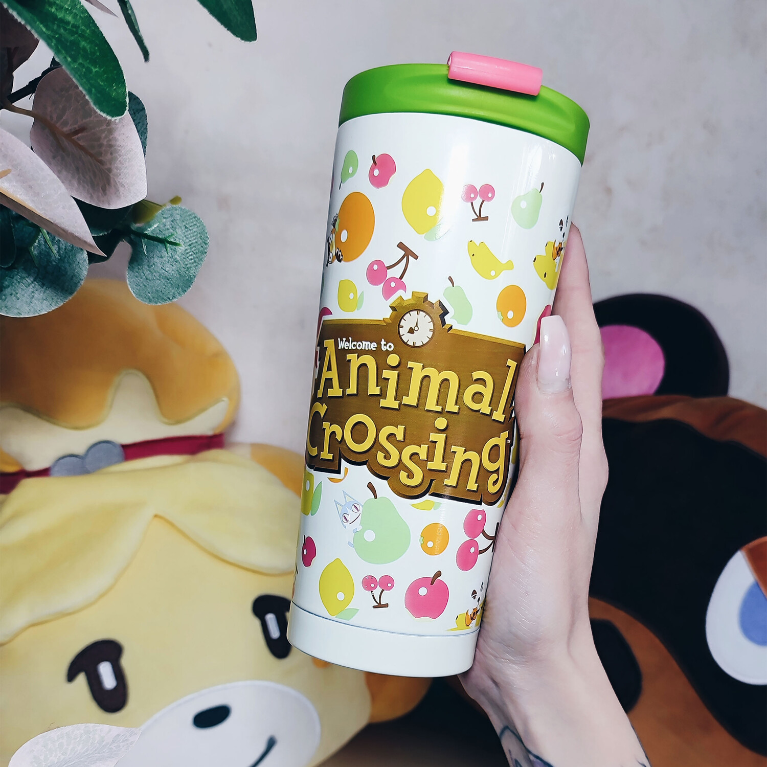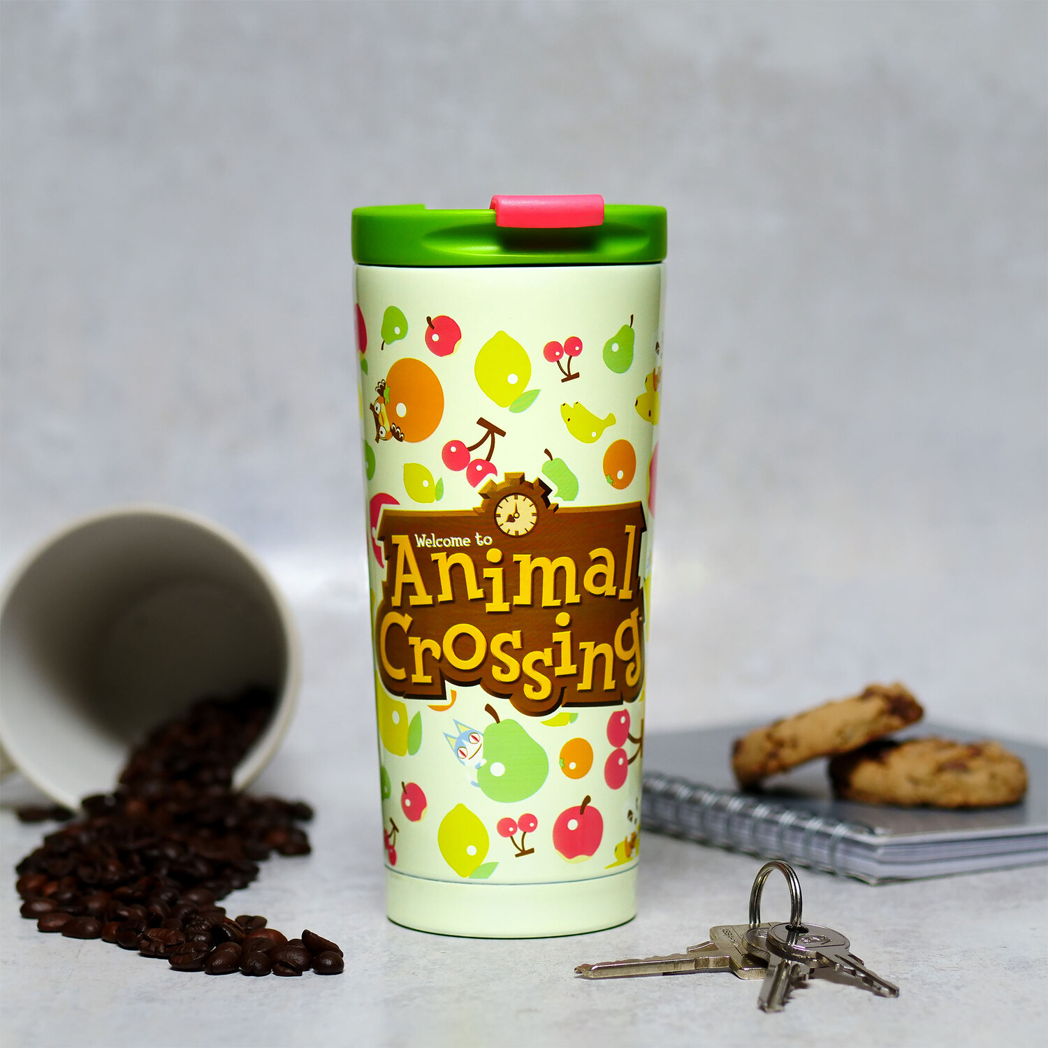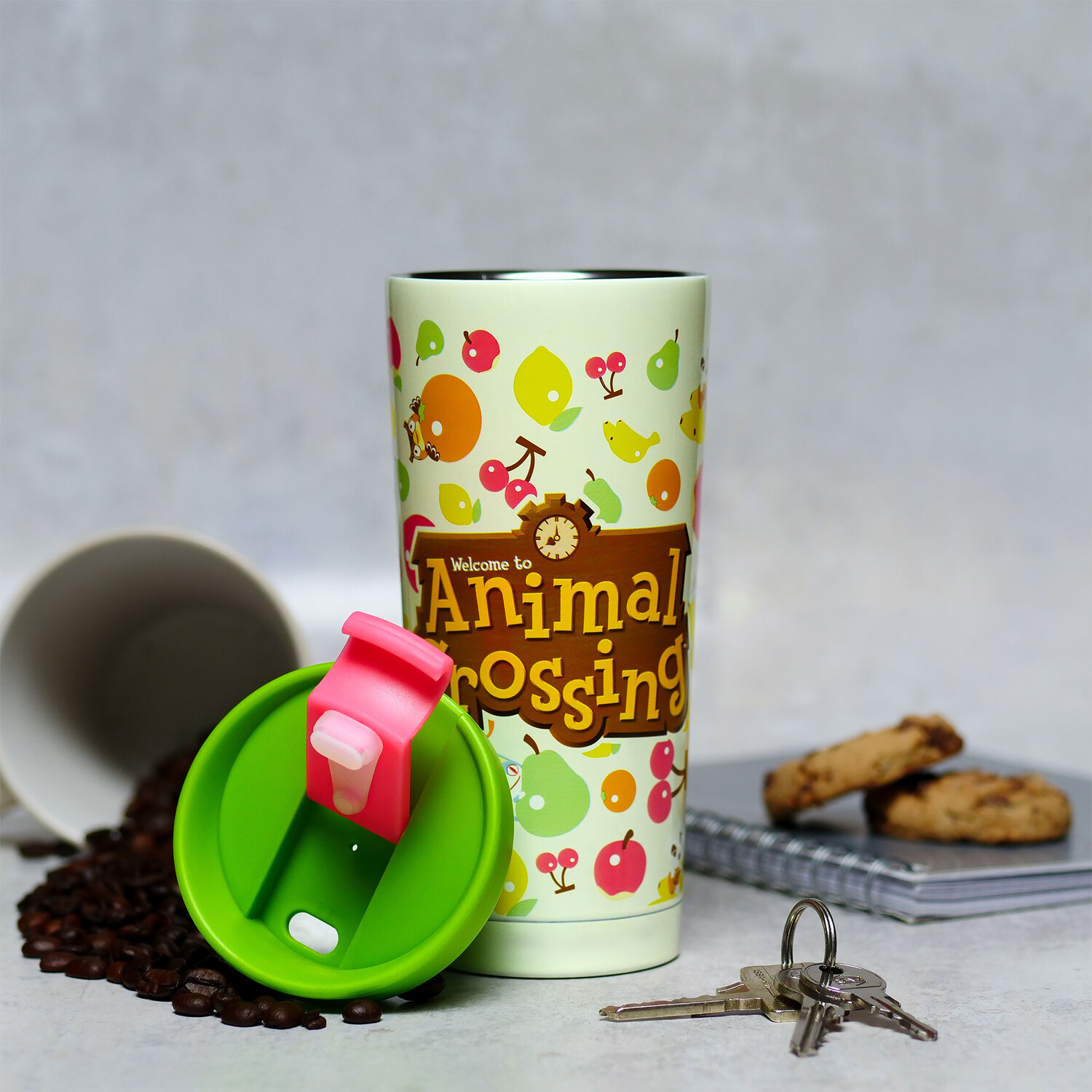 - Дорожная кружка с фруктами и такими персонажами, как Непп и Шлип, К.К. Слайдер и Мелинда