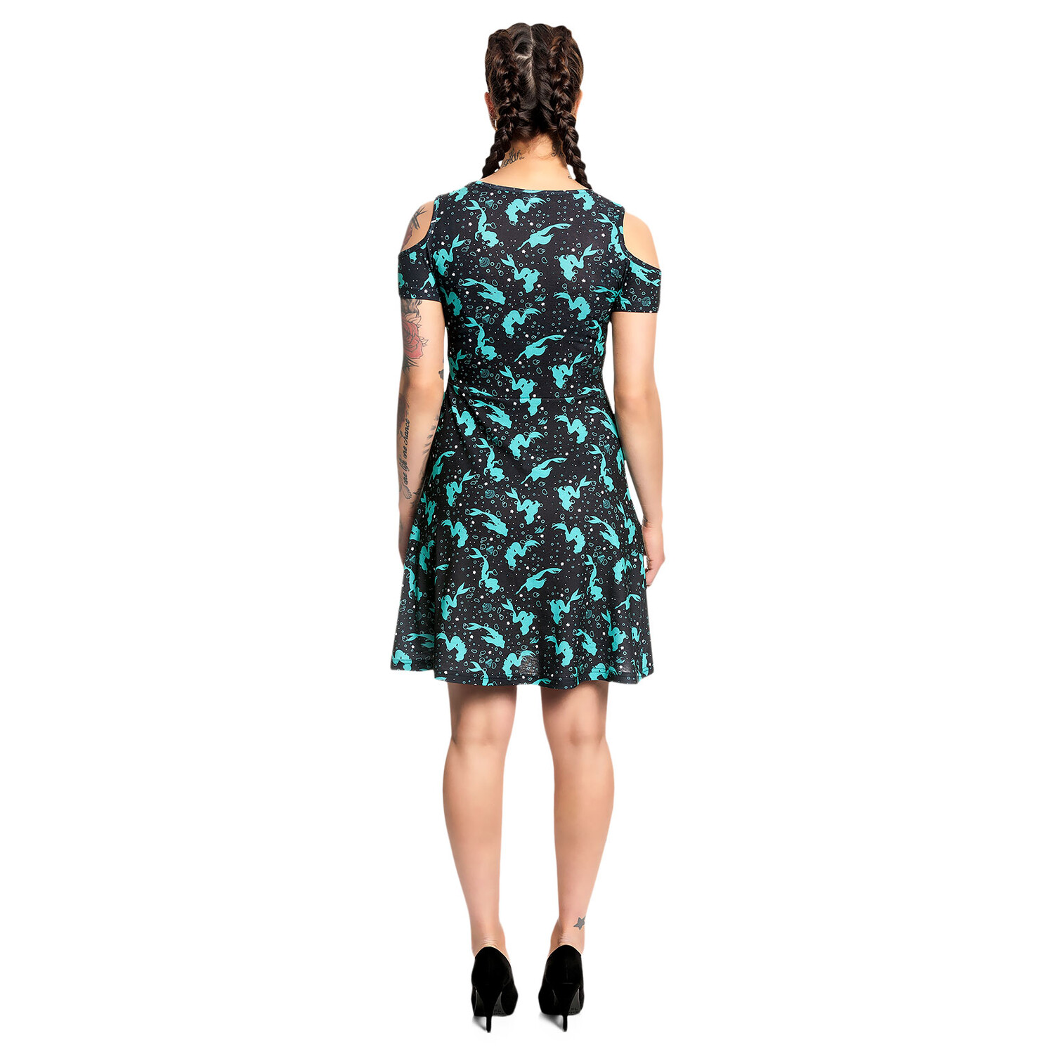 - Погрузитесь в волшебный подводный мир Русалочки с этим официально лицензированным мини-платьем Disney! Платье полностью украшено маленькими игривыми мотивами Ариэль, которые вернут вас в воспоминания о детстве. Благодаря индивидуальному крою и эластичному поясу оно подчеркивает любую фигуру, а дерзкие вырезы на плечах придают платью нотку ностальгии и современного шика одновременно. Приятная легкая ткань и струящаяся юбка делают платье идеальным компаньоном для теплых летних дней или бурных танцевальных вечеров. Черно-бирюзовый цвет напоминает глубины океана и оживленный подводный мир Ариэль. В этом платье вы обязательно будете привлекать внимание на любой вечеринке и сможете с гордостью продемонстрировать свою любовь к Disney. Инструкция по уходу: Можно стирать при 30°C!