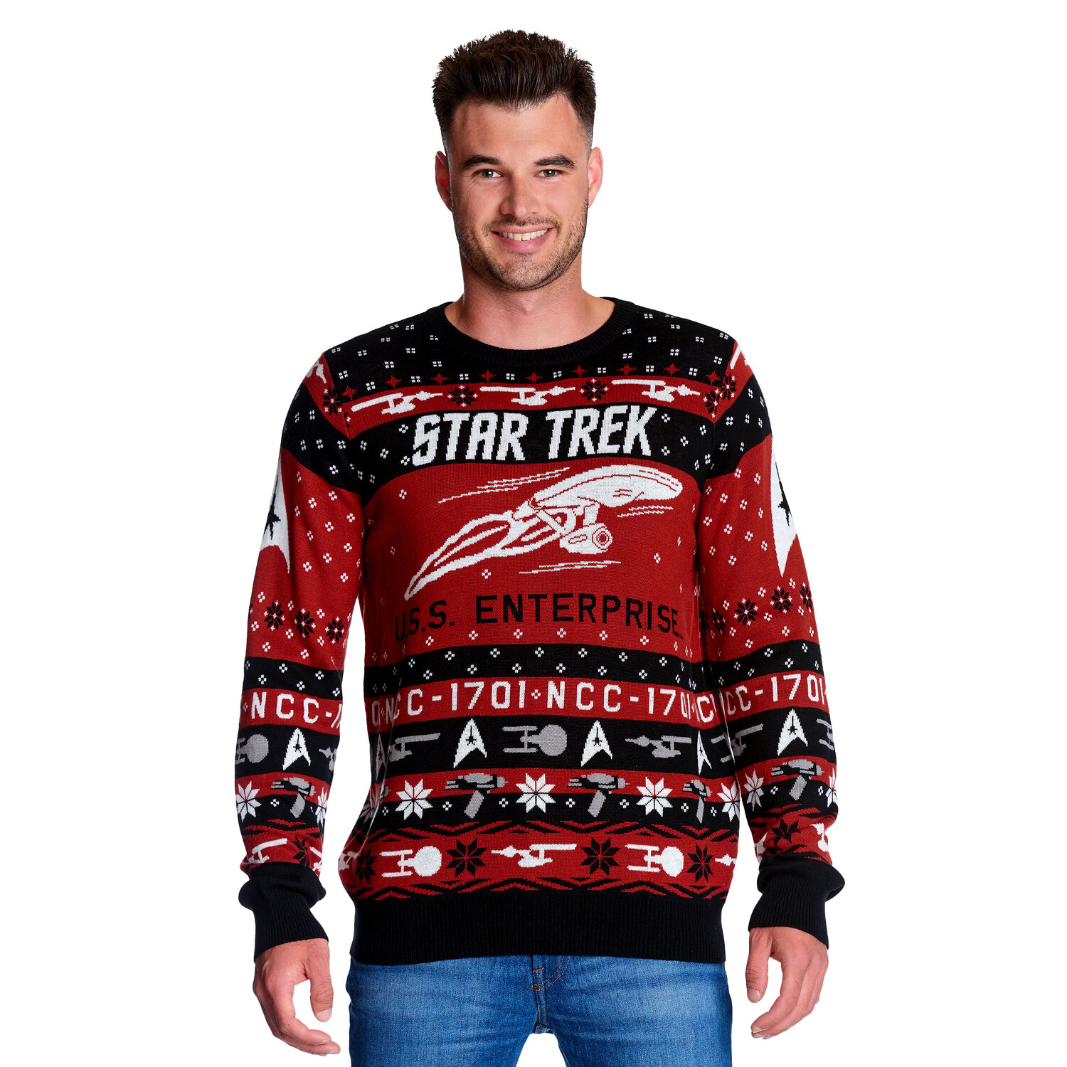 - Вы стоите рядом с капитаном Кирком и коммандером Споком. Вы приближаетесь к празднику «Сочельник» со звездолетом «Энтерпрайз», и уже не за горами другие праздники. Цвета вязаного свитера Star Trek Enterprise напоминают униформу экипажа космического корабля: красный цвет означает, что вы находитесь в отделе технологий, безопасности и связи. Три вещи, которые, как оказалось, тоже очень важны в Рождество. Каким было бы Рождество без красивой иллюминации на елке? Каким было бы Рождество без семьи и всех историй, которые вы рассказываете друг другу каждый год? А теперь перейдем к этому межгалактическому рождественскому свитеру: на груди изображен герб USS Enterprise NCC-1701, а над ним большими буквами написано «ЗВЕЗДНЫЙ ПУТЬ». Маленькие логотипы «Звездного пути», звездолеты «Энтерпрайз» и фазеры выстроены в ряд внизу, а также множество зимних деталей. Этот свитер Ugly Christmas гарантированно станет сюрпризом на каждой рождественской вечеринке. Инструкция по уходу: Можно стирать при 30°C.