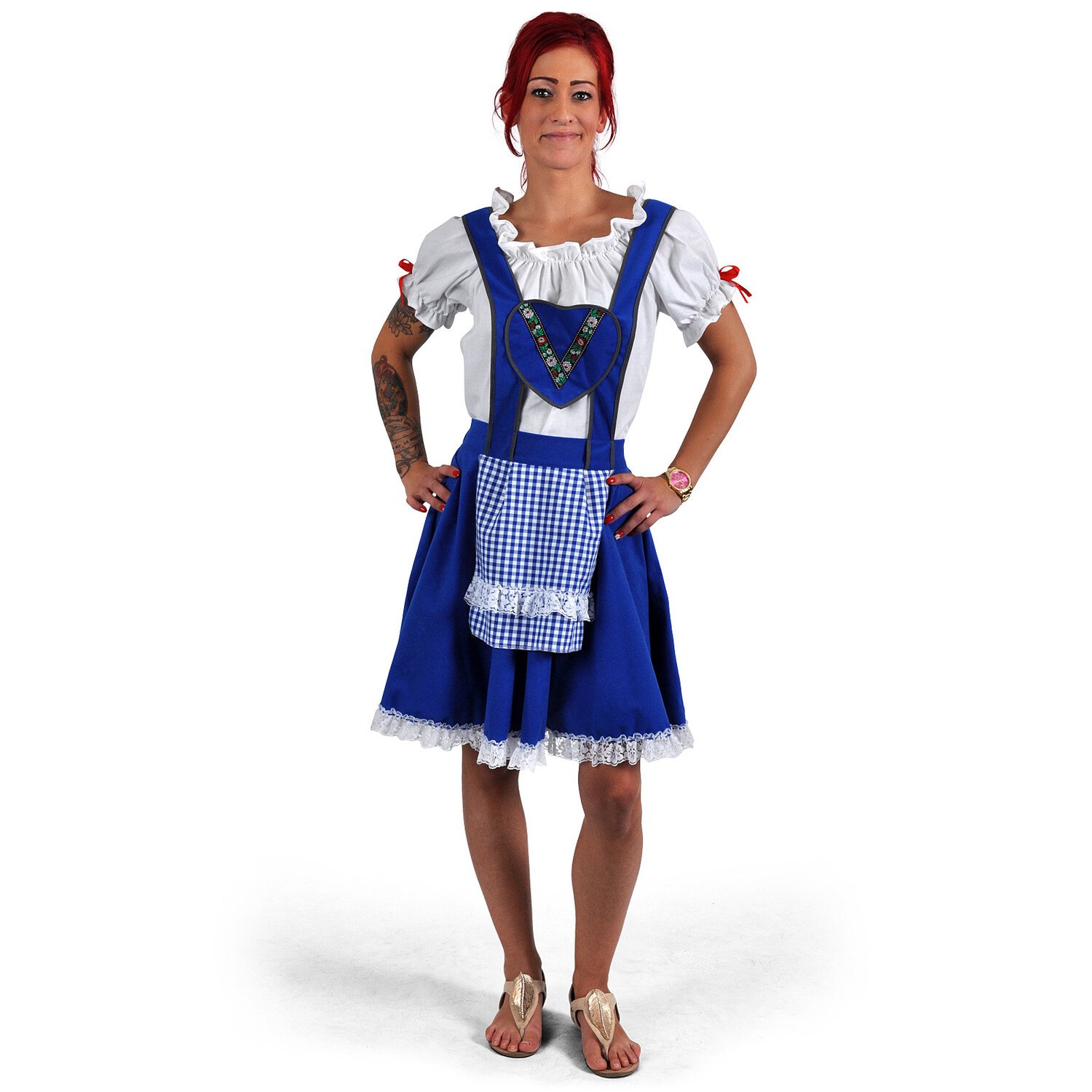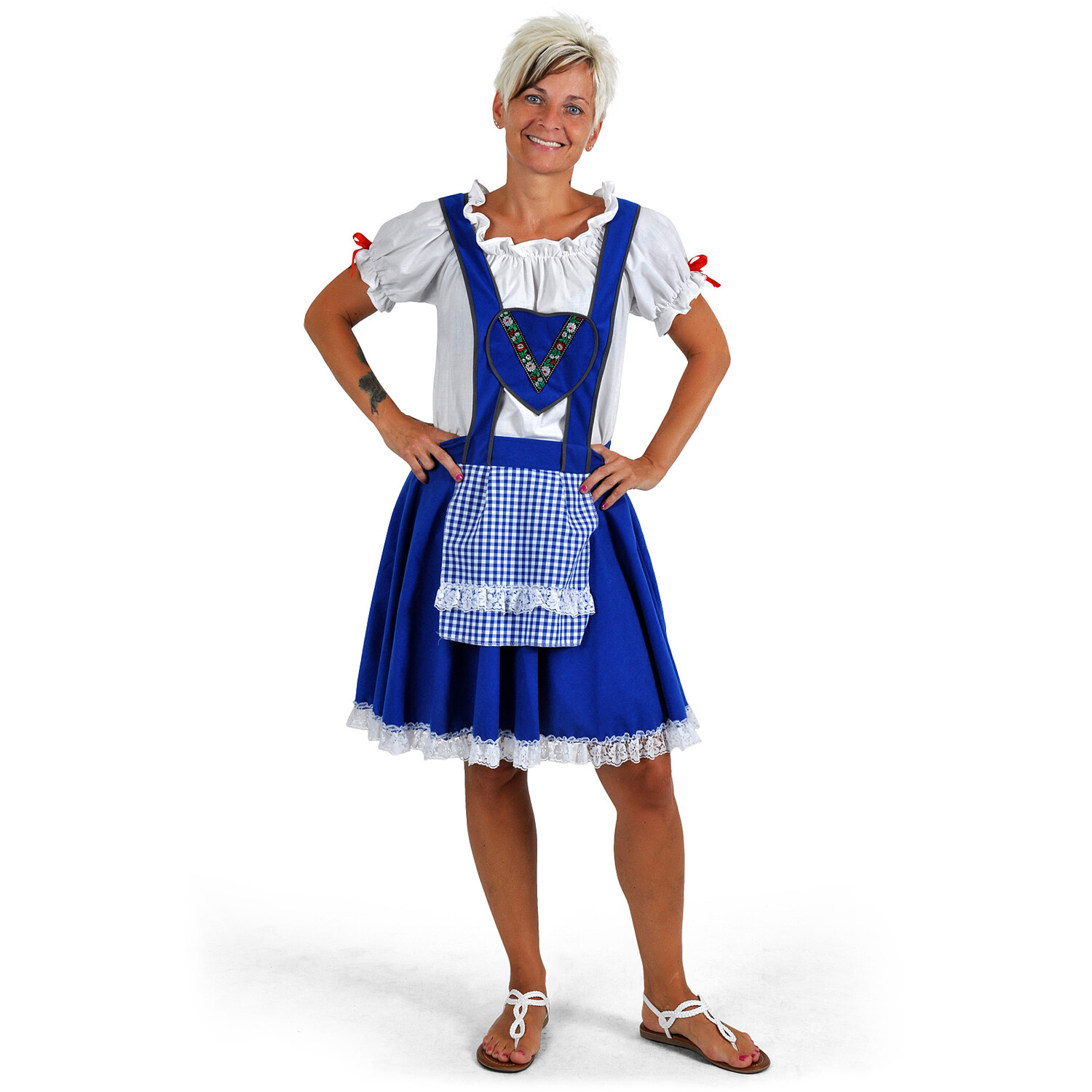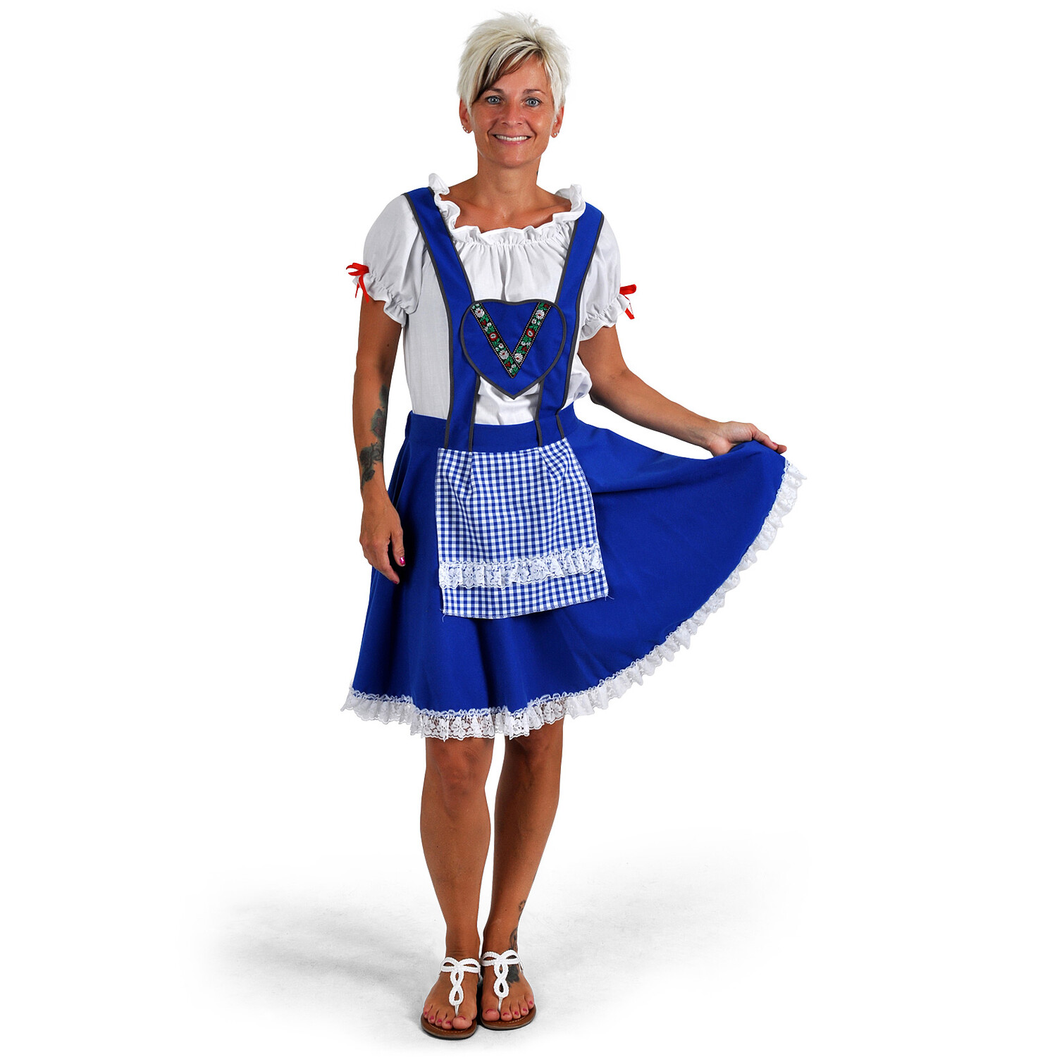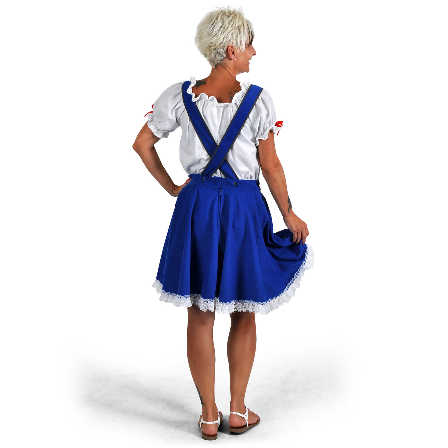 - Этот наряд Октоберфеста полностью баварский и стильный: конечно в «национальных цветах» синем и белом, с большим вырезом и короткой юбкой. Традиционный костюм-двойка состоит из блузки, которую можно носить отдельно, и юбки.