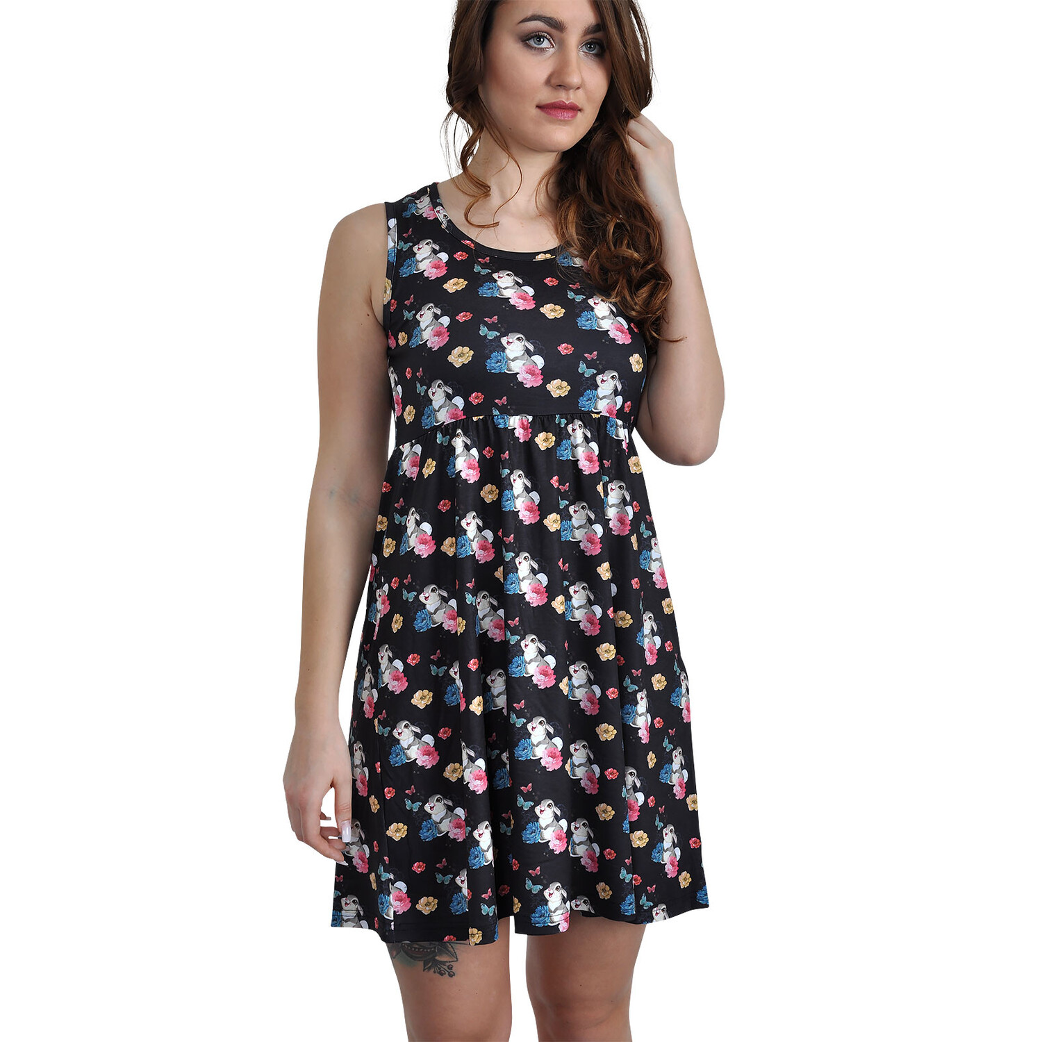 - Thumper – это не только идеальное воплощение привлекательности, он еще и содержит множество благих советов. Тот факт, что иногда это приводит к небольшим неприятностям, делает маленького кролика еще более симпатичным. Лучший друг Бэмби не только вызывает у всех улыбку, но и хорошо смотрится в виде принта по всей поверхности этого черного платья. Прилегающее к талии и с развевающейся юбкой вы можете стильно танцевать на любой цветочной поляне; фасон без рукавов не заставит вас потеть. Кстати, платье Disney доступно исключительно в Эльбенвальде и поэтому является идеальным. Абсолютный инсайдерский совет, который можно подарить.