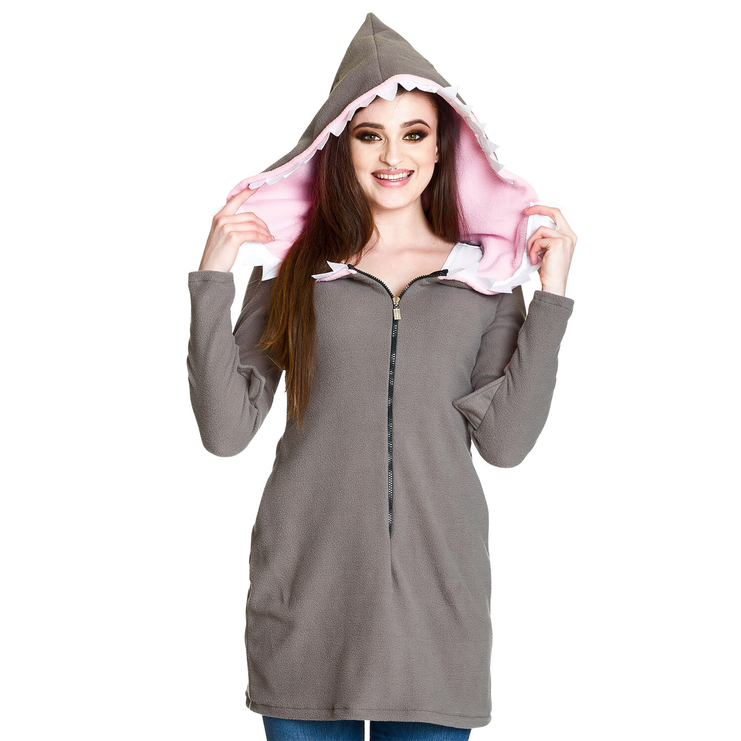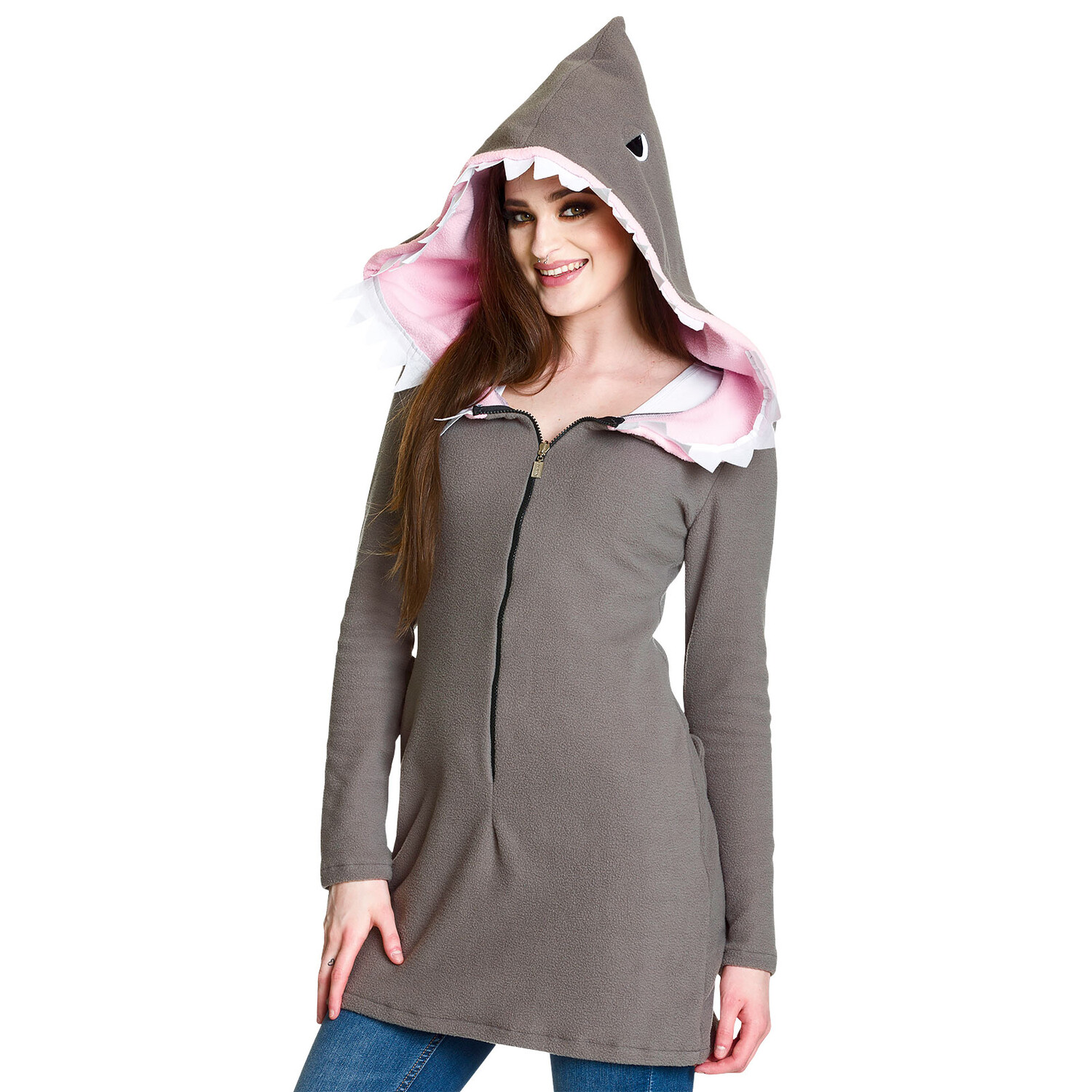 - Мини-платье с капюшоном в дизайне акулы