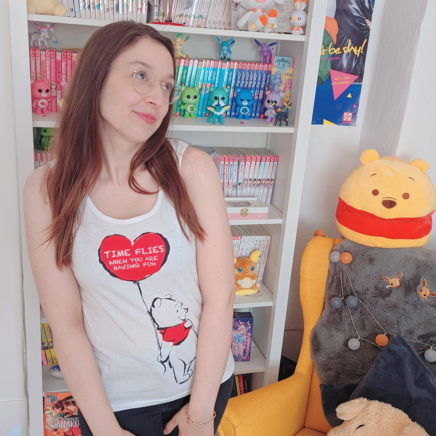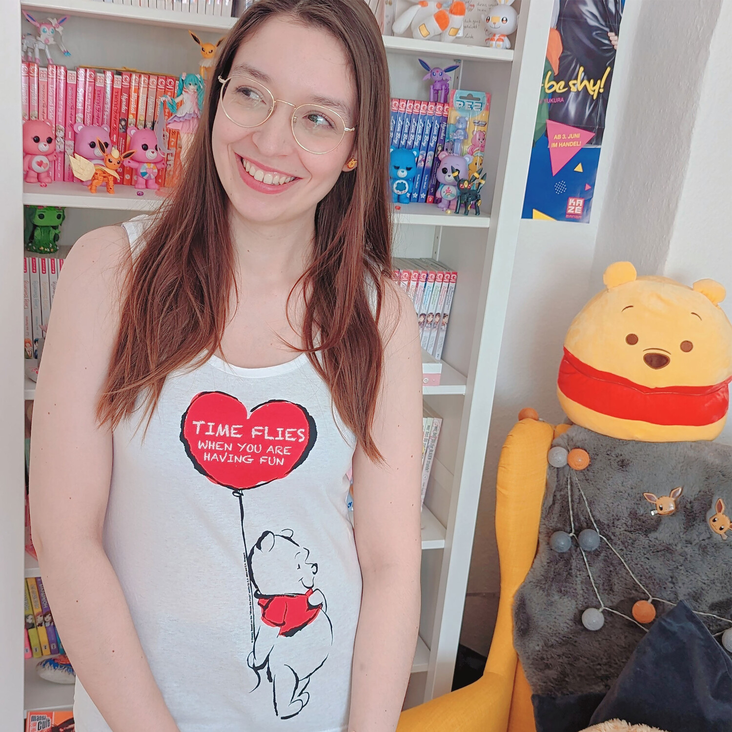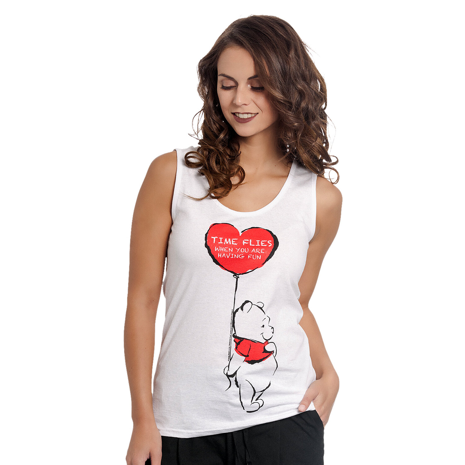 - Сладкая, как мед, и очаровательная, как наш любимый медвежонок Винни-Пух, именно такой представляет собой эта официально лицензированная майка. На нем изображен Винни-Пух, держащий воздушный шар в форме сердца с цитатой «Время летит, когда тебе весело» — веселое напоминание о том, что время летит, когда мы веселимся. Благодаря облегающему крою и широким бретелям этот топ не только привлекает внимание, но и очень удобен. Ярко-белый цвет идеально подчеркивает красочный принт спереди. С помощью этого топа вы привнесете частичку детских воспоминаний в свою повседневную жизнь и покажете всем, что являетесь поклонницей Винни-Пуха и его друзей.