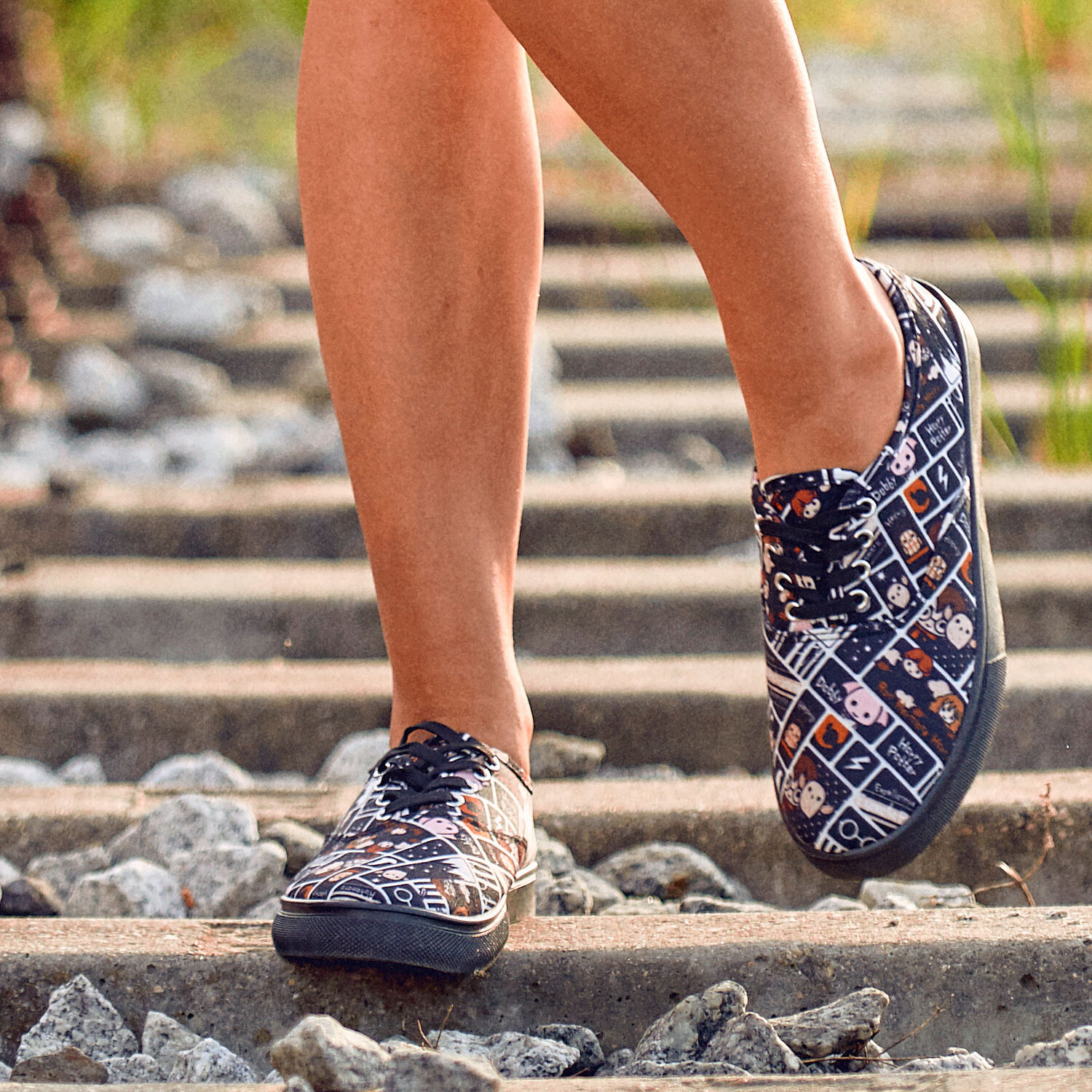 - Вы когда-нибудь задумывались, каково это - погрузиться в мир Гарри Поттера? С этими женскими кроссовками в стиле чиби вы станете еще ближе! Официально лицензированные туфли с милым рисунком в стиле чиби украшают Гарри, Рона, Гермиону, Хедвиг и Добби и привносят волшебство прямо в ваш дом. Зашнуруйте их сейчас в черно-белых тонах и станьте волшебником повседневной жизни!