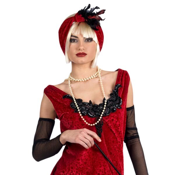 - Мода 20-х годов всегда приветствуется на карнавалах и тематических вечеринках, так что в этом высококачественном платье вы тоже выйдете на торжественный выход. Бархатное платье имеет мелкий изящный узор, прямой крой и характерные глубокие рюши. Это подчеркивает эффектная жемчужная отделка. Такое же украшение снова доступно на вырезе.