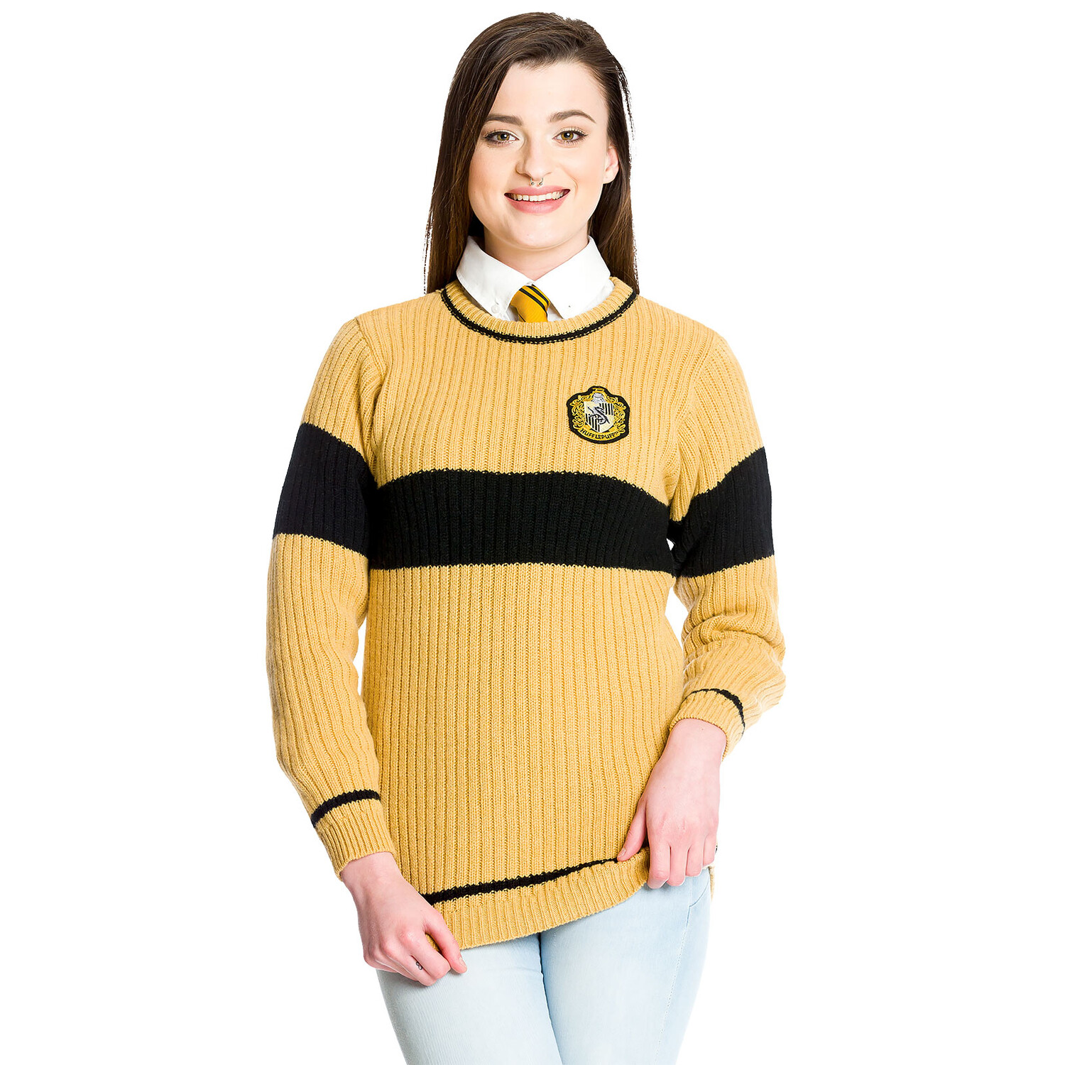 - Не только в Хогвартсе дни могут быть прохладными и мрачными, в нашем мире также стоит носить такую уютную, теплую одежду, чтобы хорошо и волшебно пережить холодные дни. Для поклонников Гарри Поттера этот свитер из Хаффлпаффа станет гораздо большим, чем просто качественным предметом одежды: это напоминание о великой серии фильмов и о сценах, в которых, например, Седрик Диггори носил именно этот свитер во время игры в квиддич.