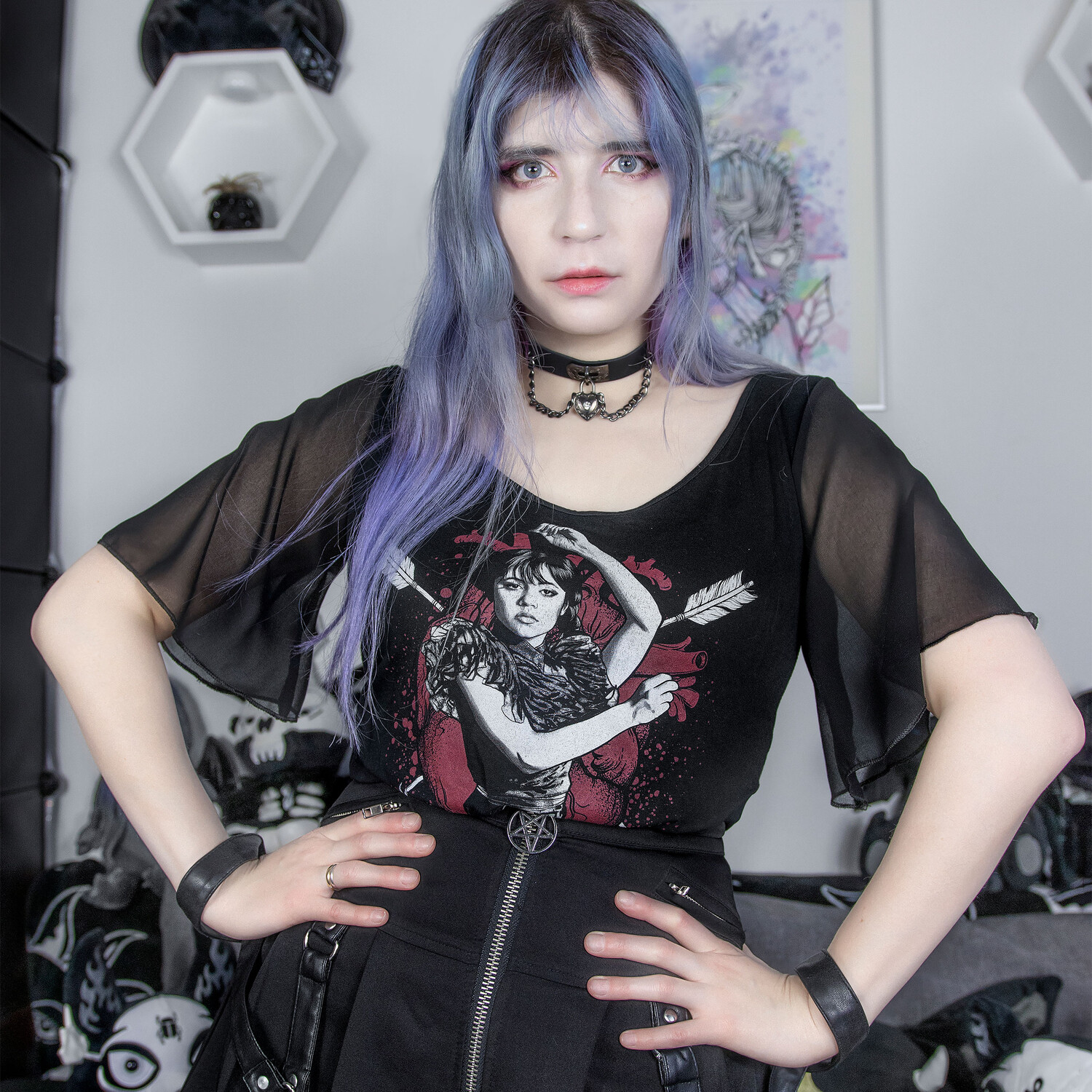 Среда — футболка Macabre Love с рукавами-бабочками.