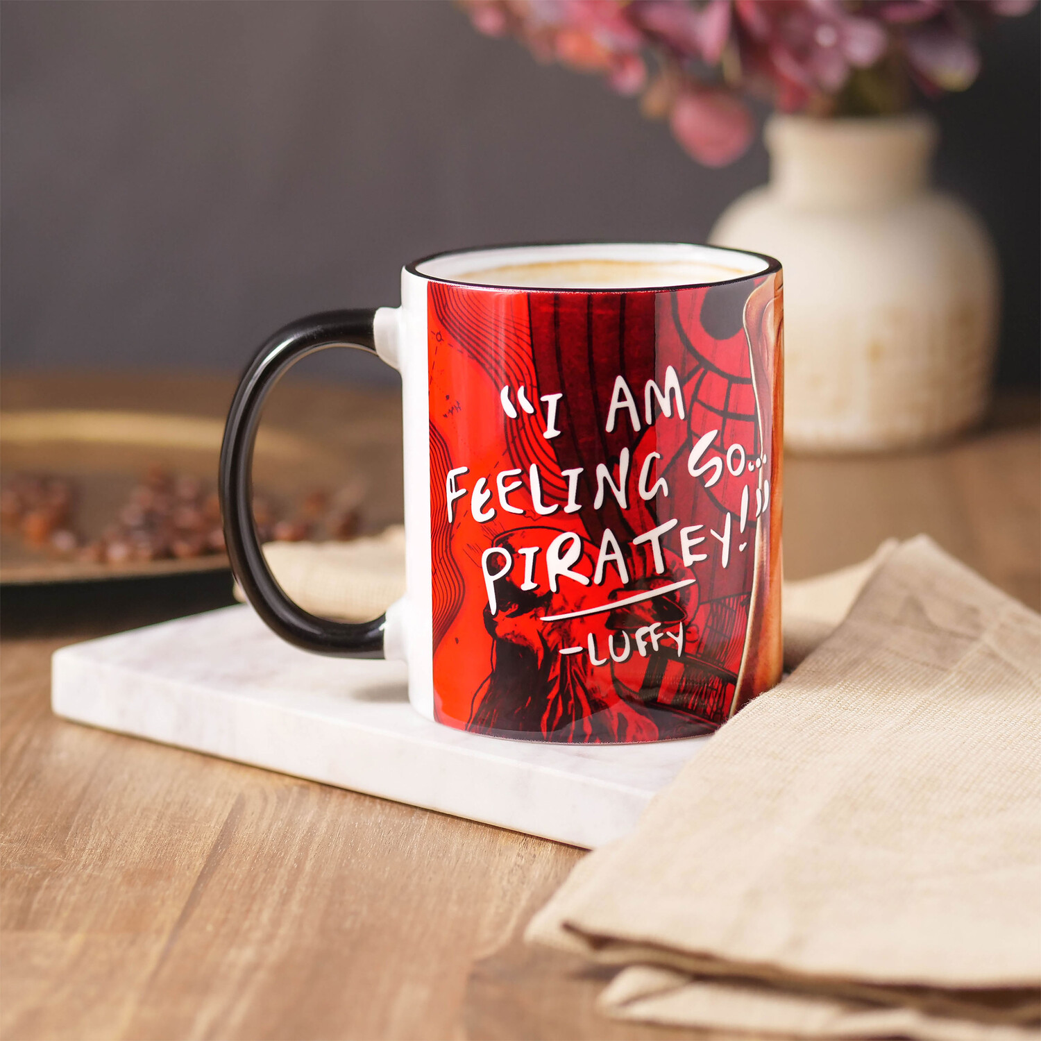 - Привет, поклонники One Piece! Представляем вашему вниманию идеальную кружку для всех, кто чувствует себя похожим на нашего героя Монки Д. Луффи: Пират! С официально лицензированной кружкой «Luffy Feeling Piratey» вы начнете день с полной энергией. Привлекательная надпись «Я чувствую себя так… Пират!!!» привлекает внимание и обеспечивает хорошее настроение за завтраком. Благодаря большой емкости в 320 мл вы сможете в полной мере насладиться любимыми напитками. И самое главное: кружку можно мыть в посудомоечной машине и использовать в микроволновой печи. Это оставляет больше времени для того, что действительно важно: вашего следующего эпизода One Piece. Позвольте себе вдохновиться духом приключений Луффи и принесите домой частичку мира One Piece!