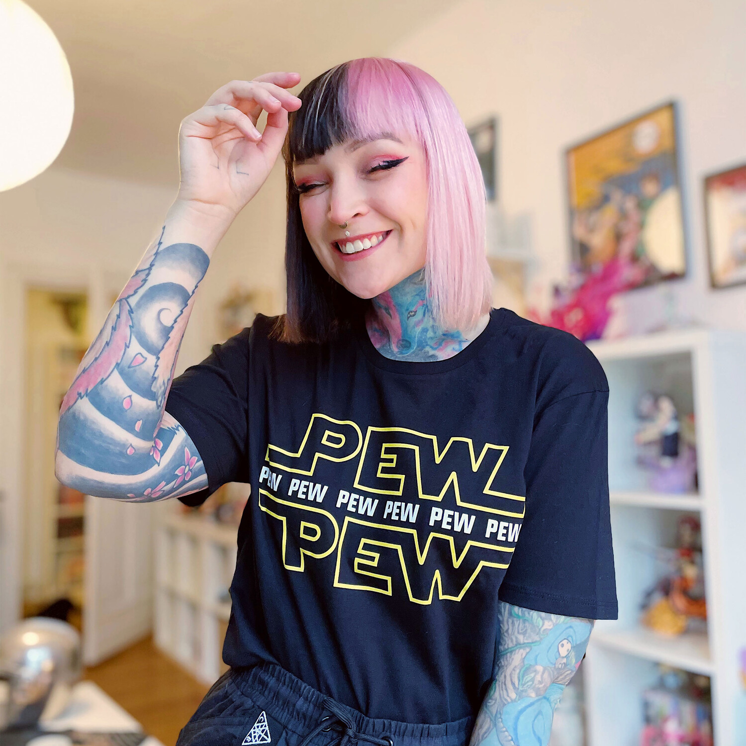 - Каким был бы фильм «Звездные войны» без знаменитый «PEW PEW PEW» стреляющий из бластеров и лазерных пушек? Поскольку звуки боя почти так же легендарны, как интро и сами надписи «Звездных войн», мы подумали, а почему бы не объединить эти два события — «Империал» или «Ребел» — футболку с надписью «PEW PEW PEW» в стиле Star? Надписи Wars идеально подходят в качестве подарка и просто необходимы всем поклонникам «Звездных войн».