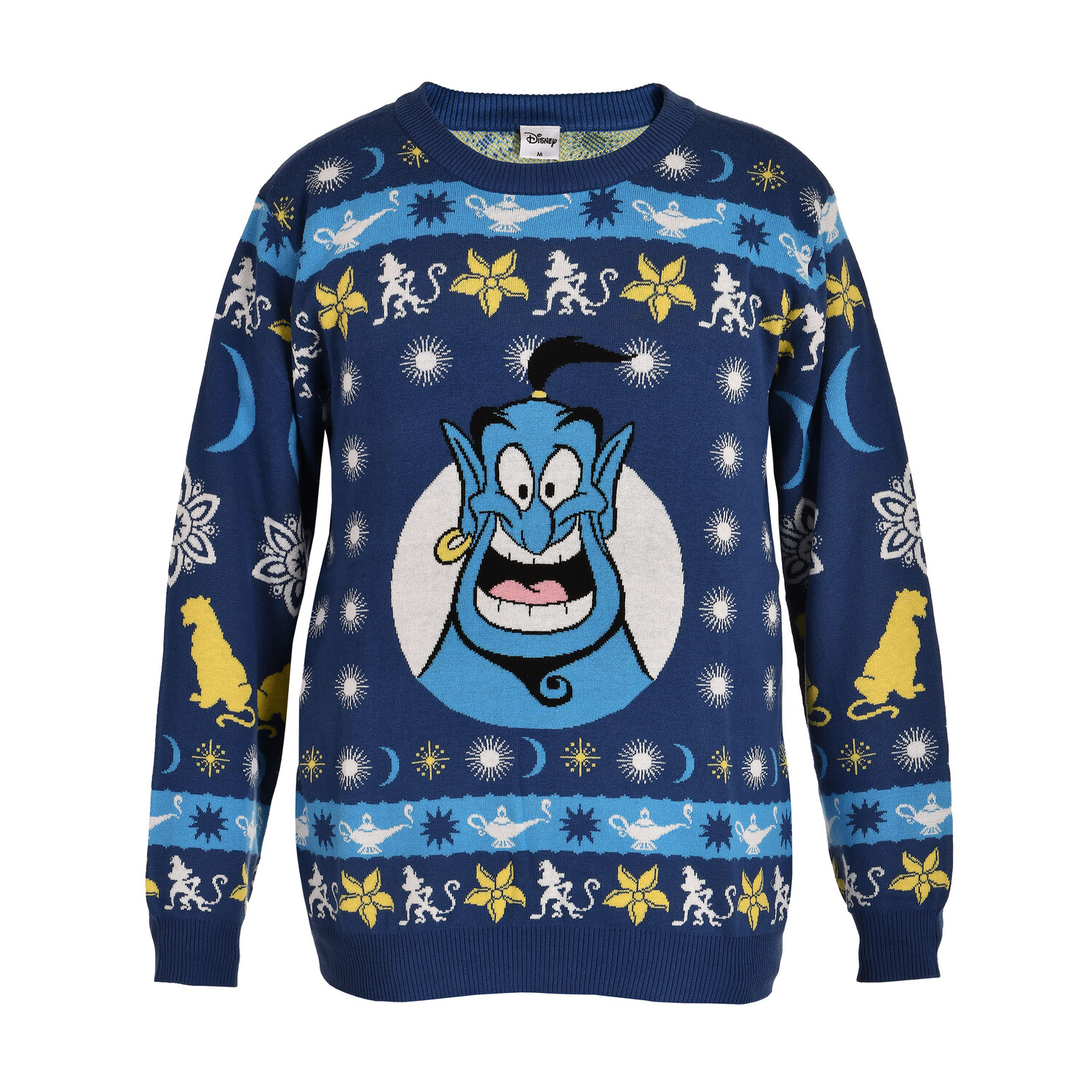- Приготовьтесь к рождественскому сезону с официально лицензированным вязаным свитером Aladdin Genie! Этот уютный свитер идеально подойдет всем поклонникам Аладдина и сразу же привнесет волшебство в ваш дом благодаря своему зимнему дизайну и джинну. Этот свитер с норвежским узором на обеих сторонах и символами Аладдина, включая Абу и Раджу, привлекает внимание. Он имеет круглый вырез, прямой крой и широкие фиксированные манжеты, которые согреют вас, пока вы наслаждаетесь любимой классикой Диснея. И лучшая часть? В этом синем рождественском свитере вы не только будете отлично выглядеть, но и будете прекрасно себя чувствовать. Так чего же вы ждете? Погрузитесь в волшебный мир Аладдина и позвольте Джинну очаровать вас в рождественский сезон. Инструкция по уходу: Можно стирать при 30°C!