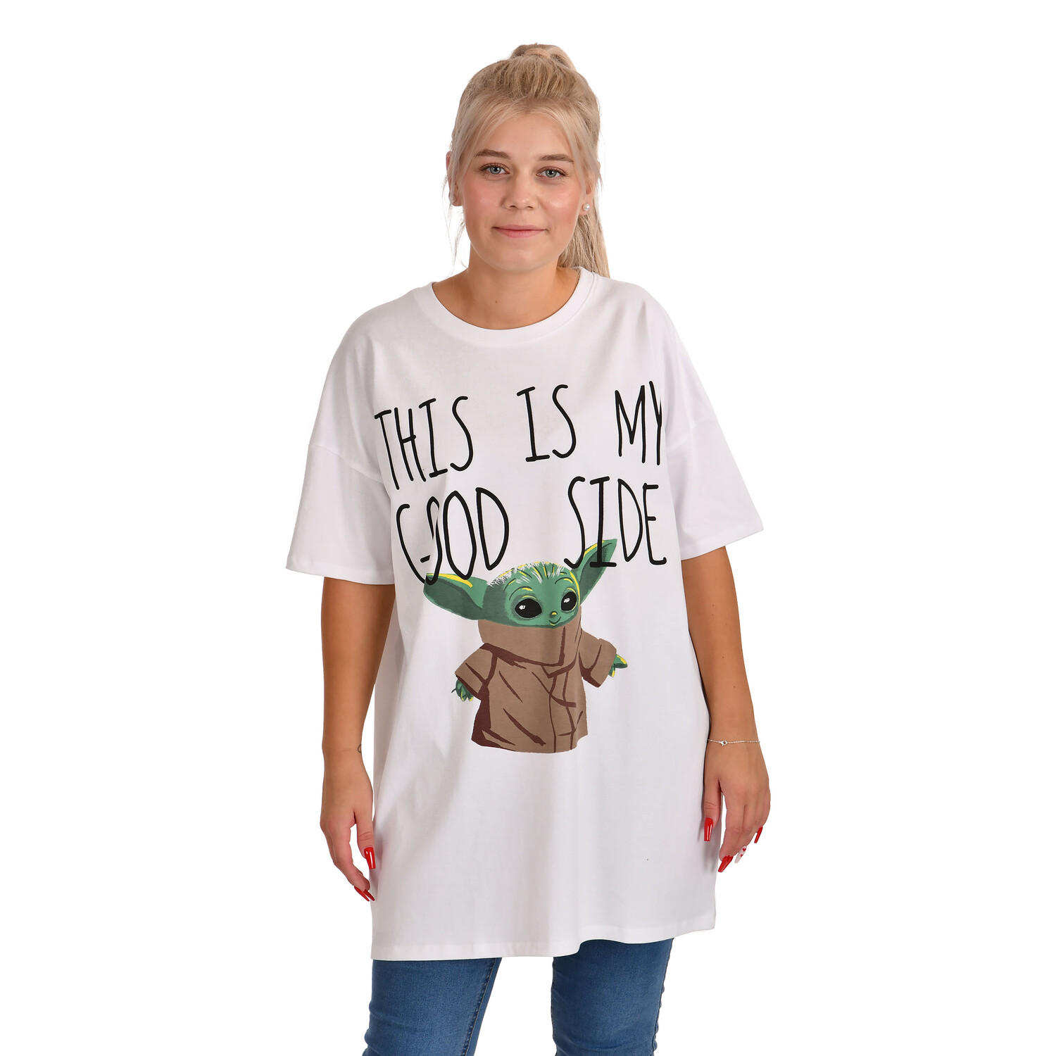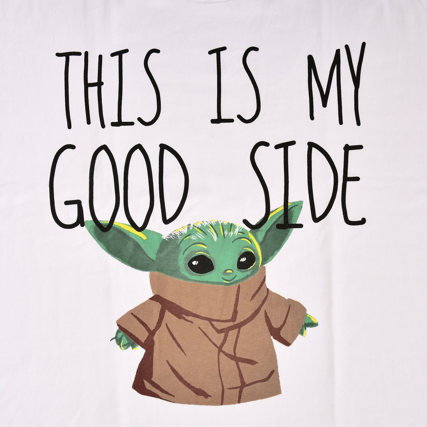 - Официально лицензированная футболка большого размера «Grogu Good Side» из фильма «Звездные войны» — незаменимая вещь для всех поклонников сериала «Мандалорец». Эта рубашка с большим принтом Грогу спереди и надписью «Это моя хорошая сторона» привлекает внимание. Прямой крой и круглый вырез обеспечивают удобную посадку. Но самое лучшее в этой рубашке — ее цвет: она ярко-белая, как хорошая сторона силы! В этой рубашке вы не только продемонстрируете свой энтузиазм по поводу «Звездных войн», но и свое чувство юмора. И кто знает, возможно, оно даже поможет вам победить темную сторону силы. Инструкция по уходу: Можно стирать при 30°C!