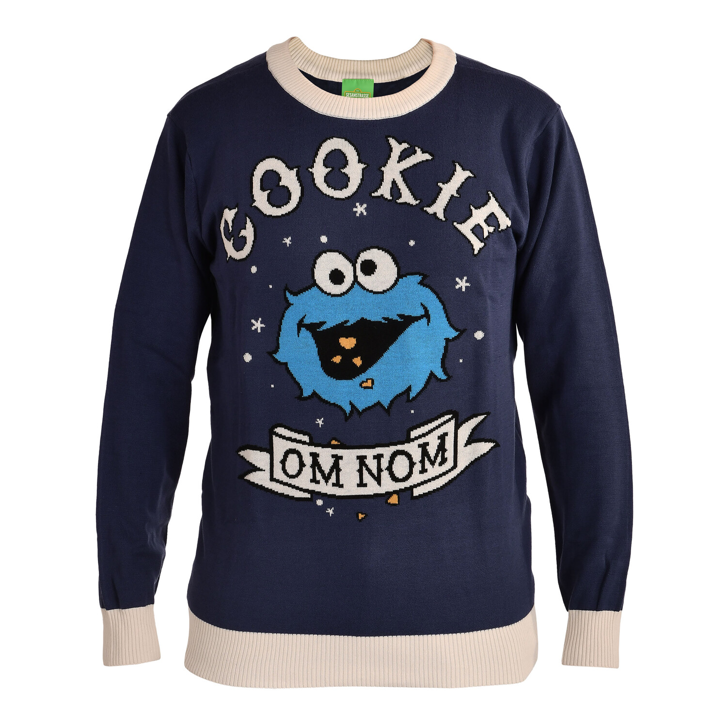- Поддайтесь очарованию Cookie Monster с этим официально лицензированным вязаным свитером «Улица Сезам»! Свитер Cookie Monster Cookie Om Nom отдает дань уважения нашему синему другу, любящему печенье, из «Улицы Сезам». Этот свитер с большим принтом Cookie Monster спереди притягивает взгляды. Свободный длинный крой и круглый вырез обеспечивают удобную посадку. Широкие плотные манжеты согреют и создадут уют зимой. Будь то уютная посиделка с друзьями или посещение рождественской ярмарки, этот свитер сделает вас звездой сезона. Наденьте его и почувствуйте себя частью «Улицы Сезам». Инструкция по уходу: Можно стирать при 30°C.
