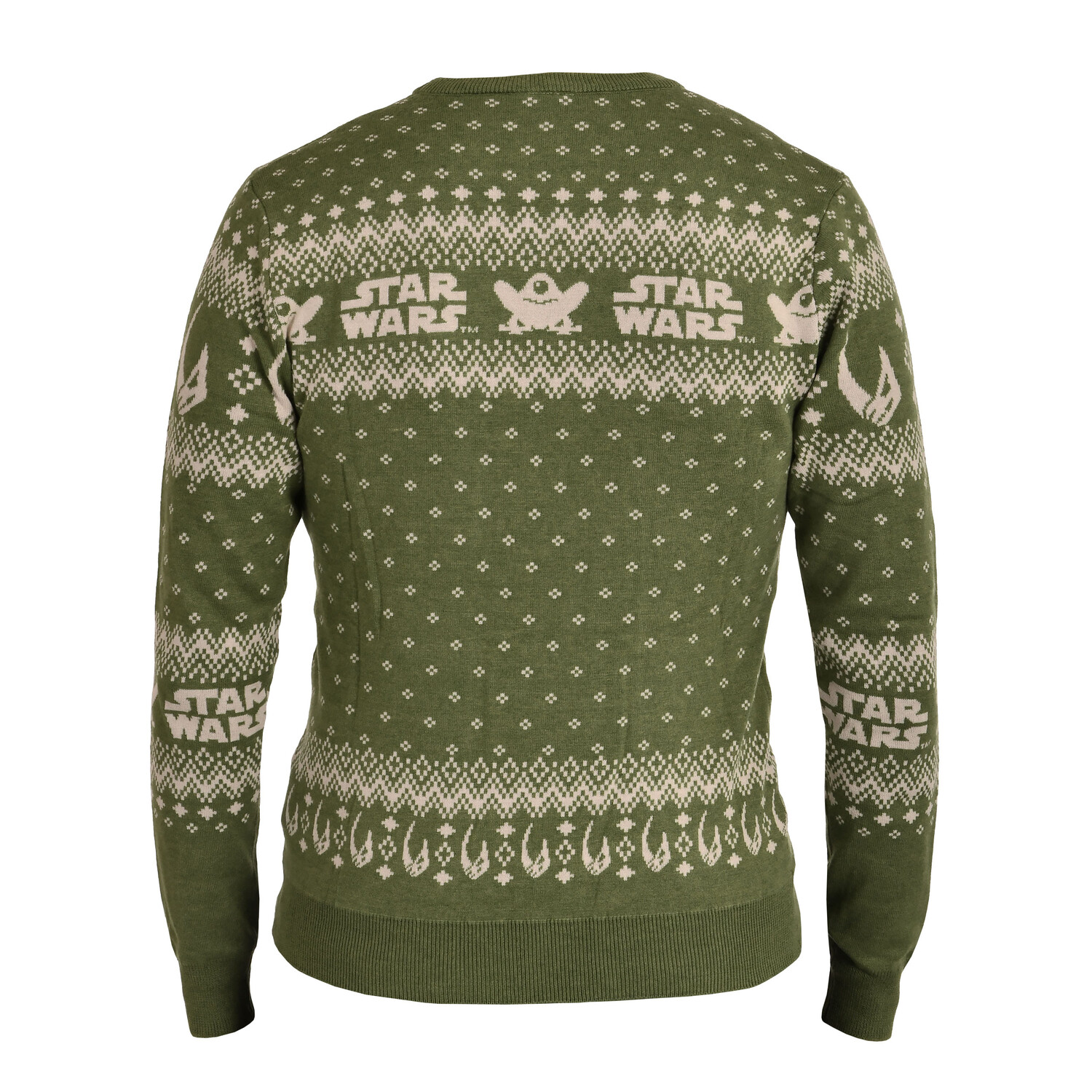 - Приготовьтесь погрузиться в далекую-далекую галактику с нашим официально лицензированным вязаным свитером в стиле Звездных войн! Этот свитер с зимним мотивом Мандо и Грогу станет идеальным компаньоном для всех поклонников «Звездных войн» в рождественский сезон. Двусторонний норвежский узор с маленькими символами «Звездных войн» привлекает внимание и показывает всем, что вы настоящий знаток саги «Звездные войны». Свитер имеет круглый вырез, прямой крой и широкие фиксированные манжеты - идеально подходит для уютных вечеров на диване или встречи с друзьями. И лучшая часть? Он зеленый! Как и сам маленький Грогу. Так что вы сможете не только согреться, но и носить частичку истории Звездных войн.