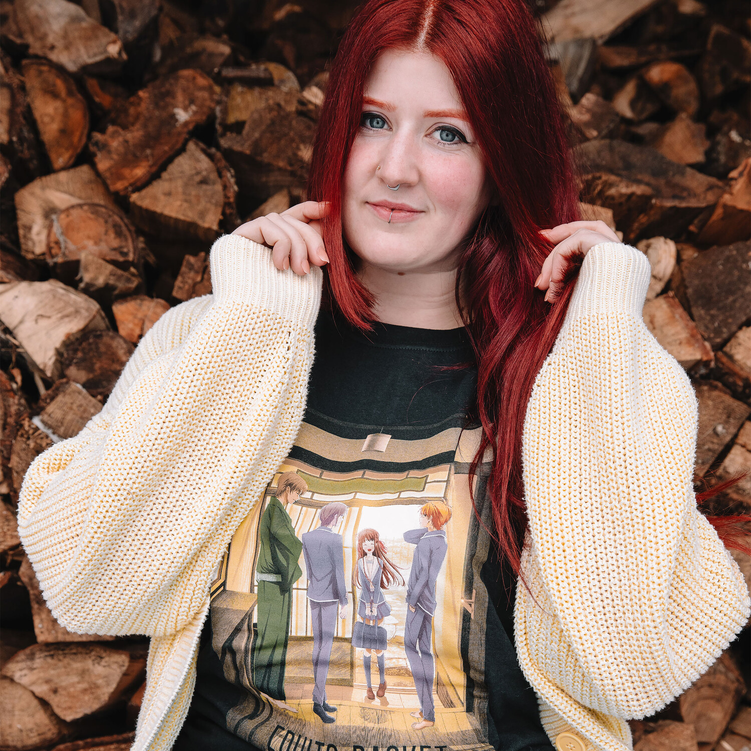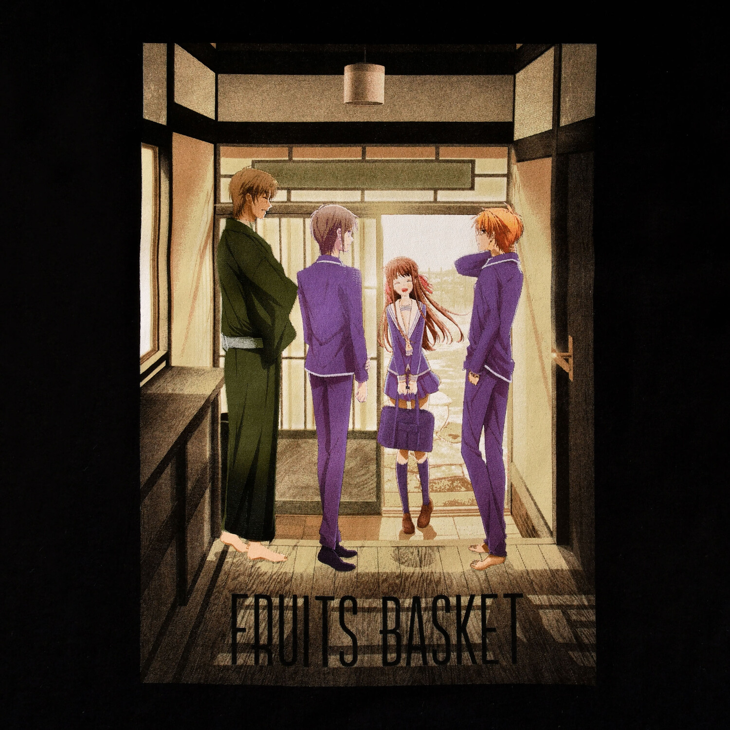 - крупный принт спереди с изображением Тору Хонды, Шигуре Сома, Юки Сома и Кё Сома