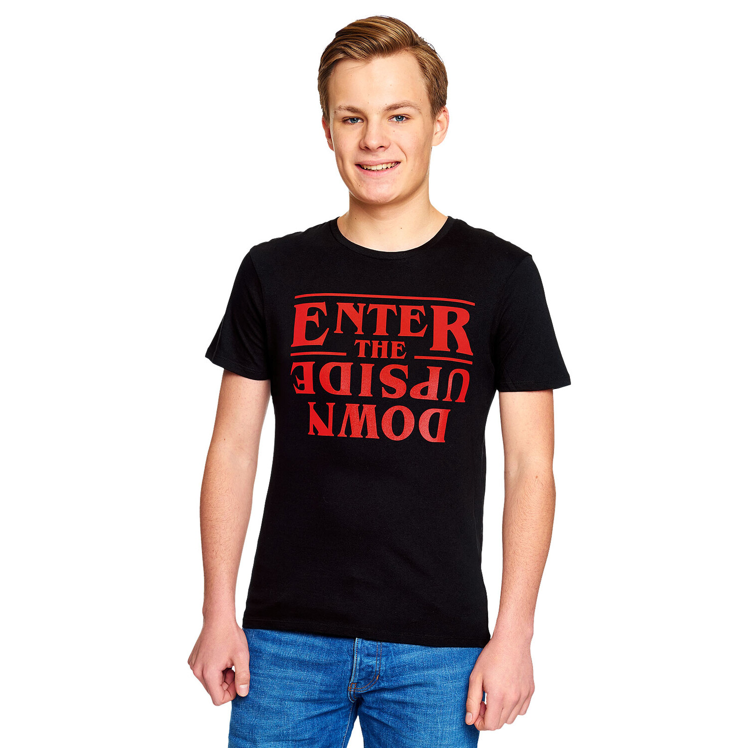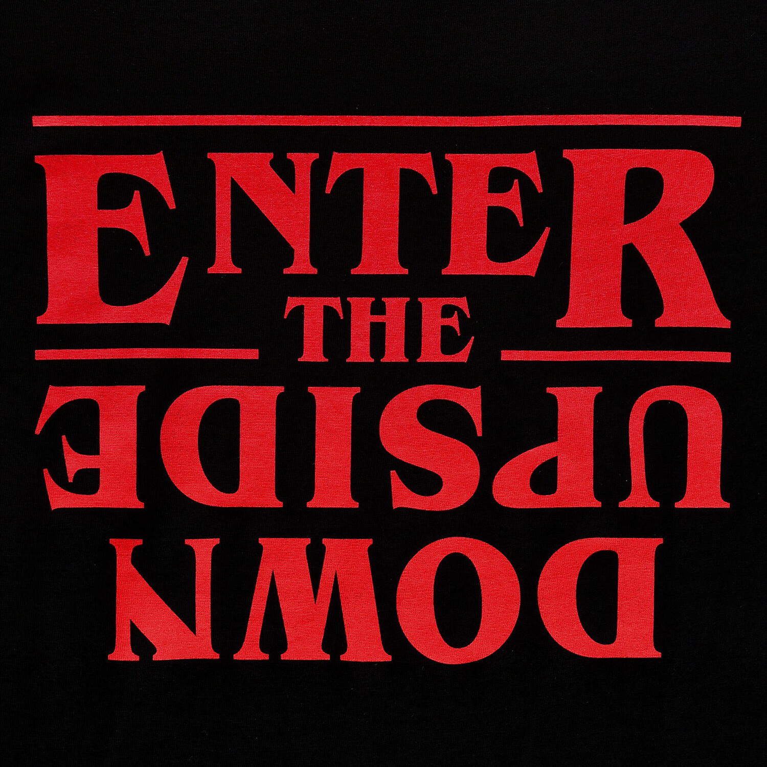 - Вы готовы Погрузиться в темный мир «Очень странных дел»? С нашей футболкой «Enter The Upside Down» вы можете сделать именно это – и сделать это стильно! Крупный принт спереди рубашки эффектно показывает, что вы настоящий фанат культового сериала. Благодаря прямому крою и классическому круглому вырезу футболка не только удобно сидит, но и отлично выглядит. Черный цвет делает эту модель универсальной базовой моделью, которую можно носить в любом случае. Покажите всем, что вы настоящий фанат «Очень странных дел», и превратите каждый день в приключение в перевернутом мире!