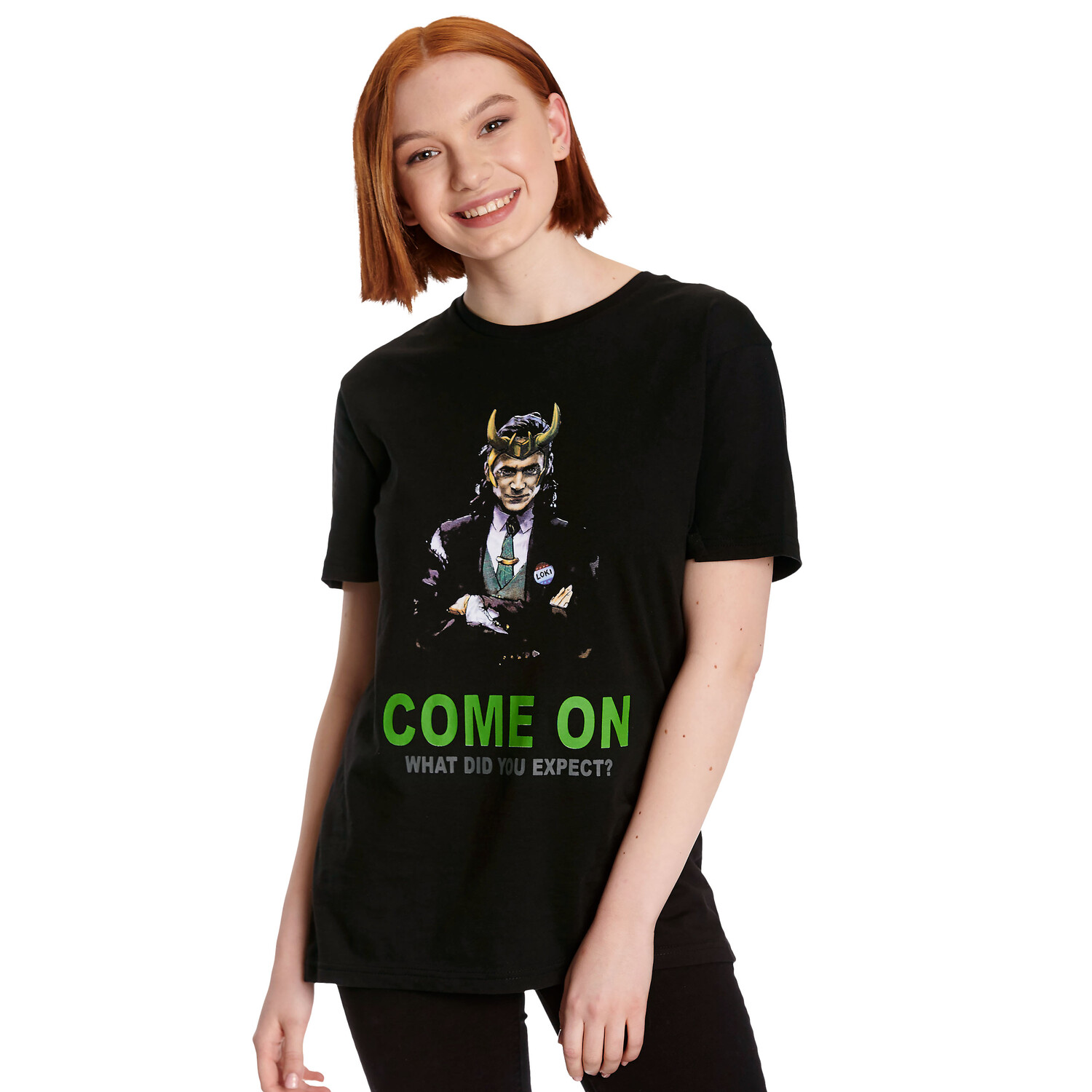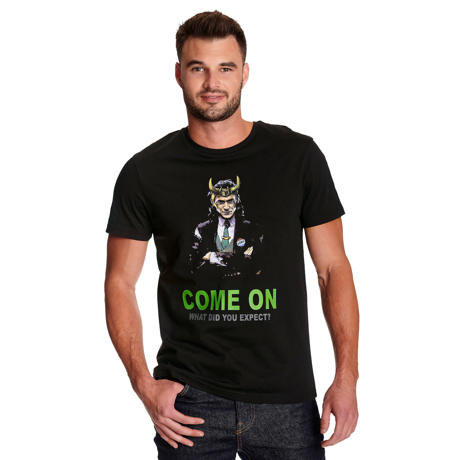 - Покажите свое чувство юмора и энтузиазм по поводу Marvel с помощью этой официально лицензированной футболки «Локи — Давай». С большим принтом Локи спереди и дерзкой надписью «Да ладно, чего ты ожидал?» вы наверняка привлечете внимание всех поклонников Marvel. Футболка классического прямого кроя с круглым вырезом загадочного черного цвета идеально подходит для воплощения вашего внутреннего Локи! С этой покупкой вы не только станете обладателем крутой футболки, но и проявите свою поддержку бренда «Локи». Так что не будьте магглом, приобретите футболку «Локи» и покажите всем, что вы настоящий фанат Marvel. Инструкция по уходу: Можно стирать при 30°C!