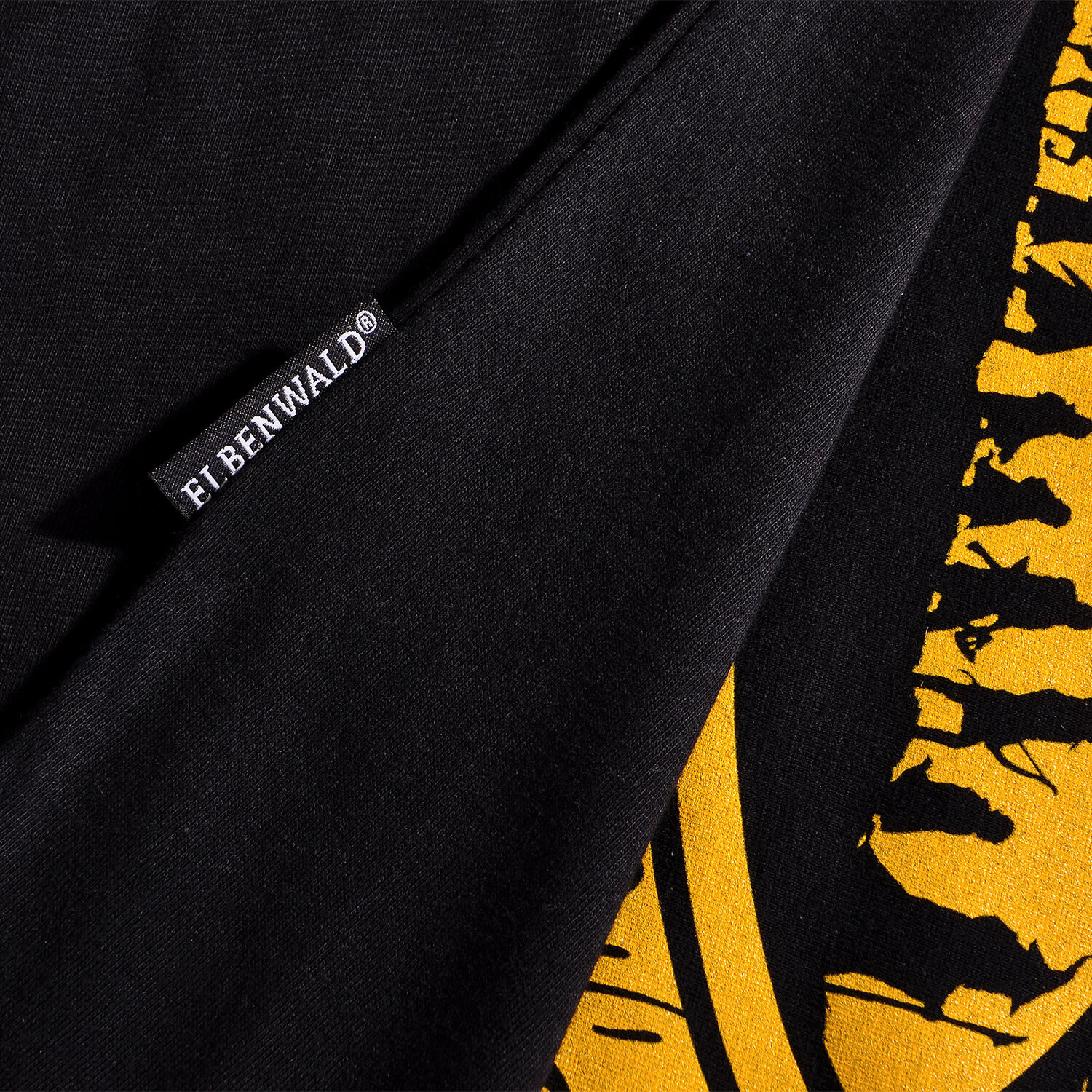 - большой принт спереди с изображением «Братства кольца» и круглой шеи
