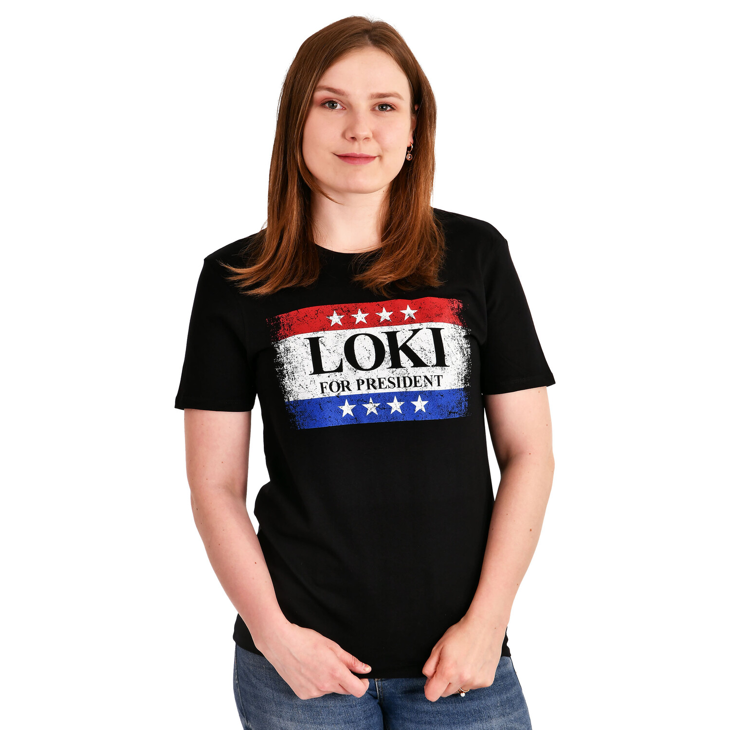 Информация о продукте «Футболка For President черная для фанатов Локи»