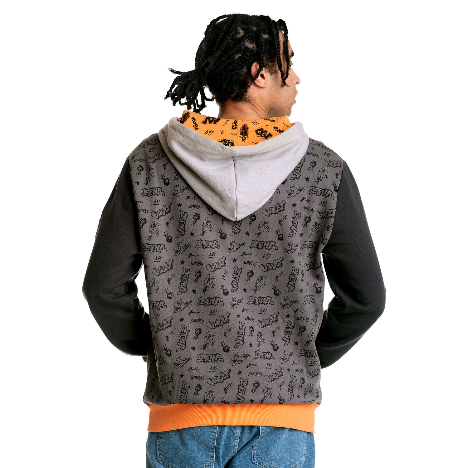 - прорезные карманы, внутренняя часть капюшона и спина с принтом по всей поверхности