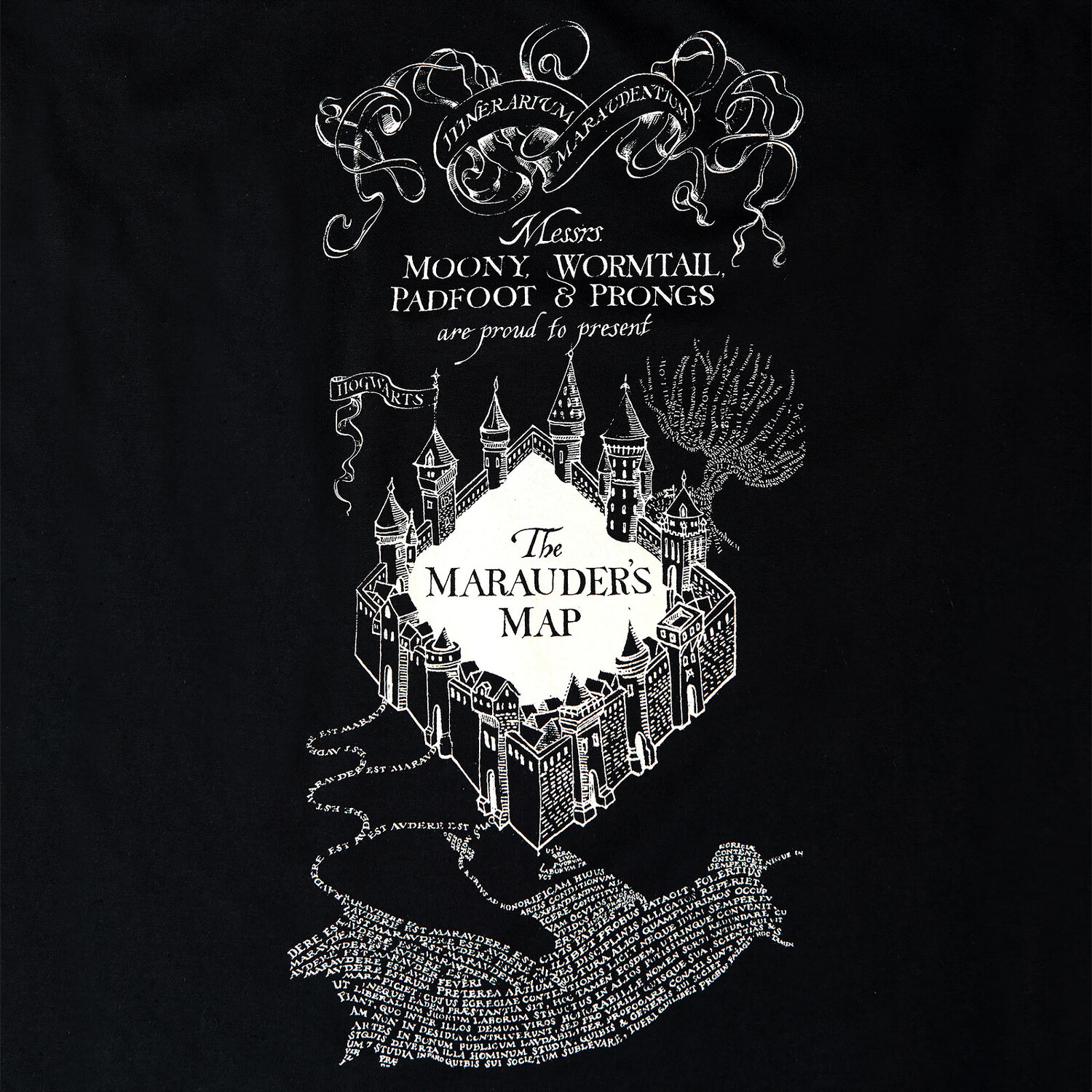 - большой принт с изображением карты мародера спереди