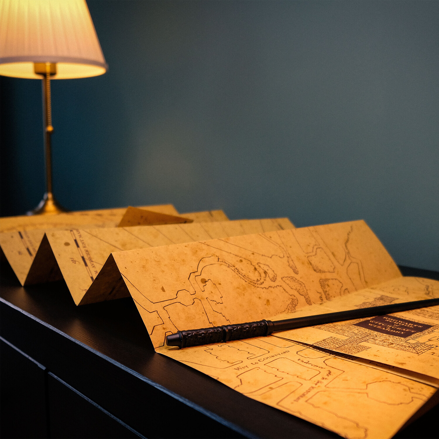 - Точная копия Карты Мародеров – необычный и очень стильный аксессуар для каждого поклонника Гарри Поттера. Он выглядит как неприметный, ничем не помеченный листок пергамента, но когда его открываешь, он активируется и показывает Хогвартс и всю территорию школы на почти двухметровом листе изящной бумаги со всеми известными тайными ходами — просто великолепно! Ради зрителя он раскрывает множество интересных секретов, которые могут пригодиться многим настоящим ученикам-волшебникам. Гарри Поттер получает этот загадочный пергамент в подарок от Фреда и Джорджа Уизли незадолго до Рождества своего третьего учебного года. Однажды они украли его из ящика с конфискованными вещами в кабинете смотрителя. В шестом фильме Карта Мародёров снова играет важную роль, но и ограничения школьного плана становятся очевидными: Гарри ищет Драко Малфоя, но не может найти его на карте, когда тот находится в Выручай-комнате. Одноименная презентационная витрина, которую также можно приобрести в магазине Эльбенвальда, идеально подходит для хранения Карты Мародеров.
