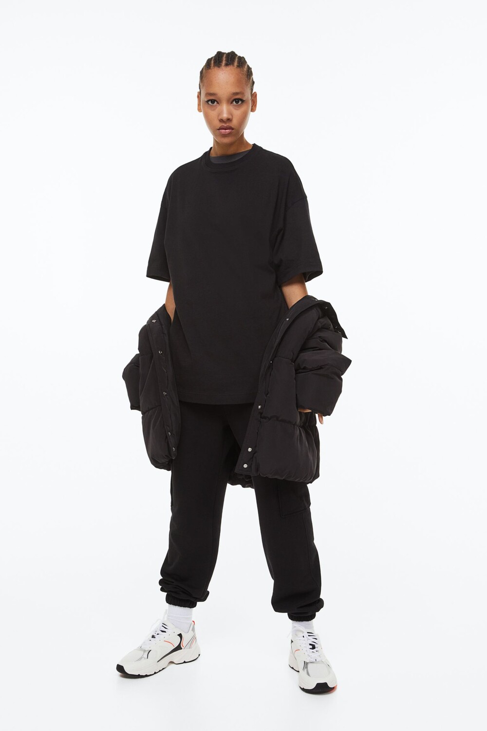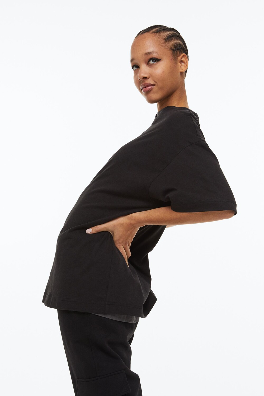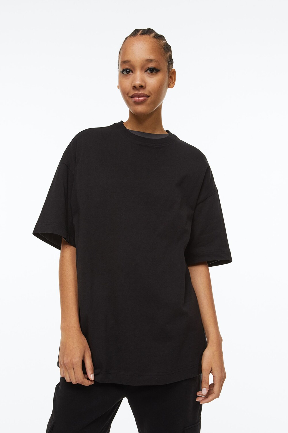 Футболка оверсайз из мягкого хлопкового трикотажа. Ребристый вырез, сильно спущенные плечи