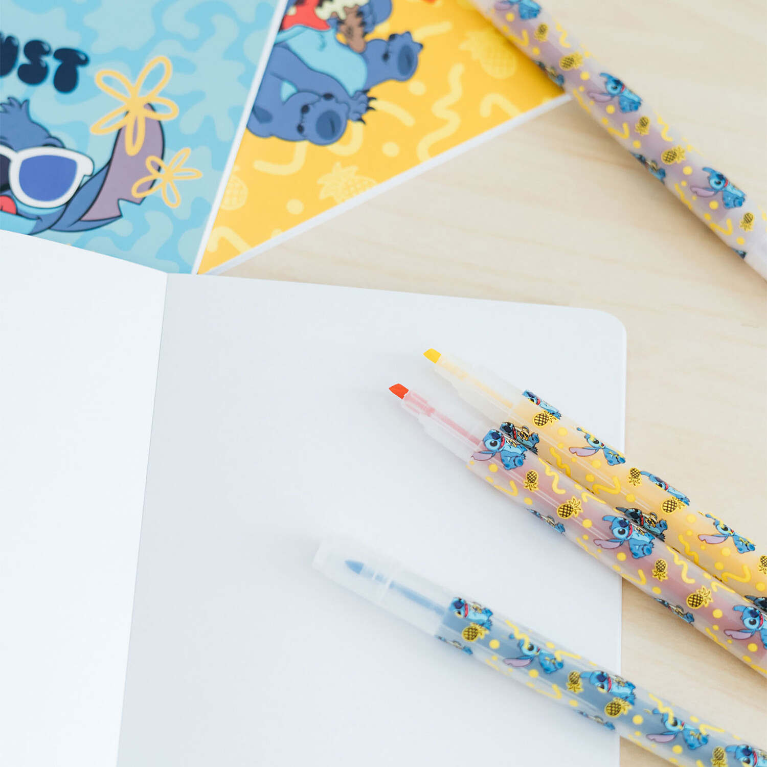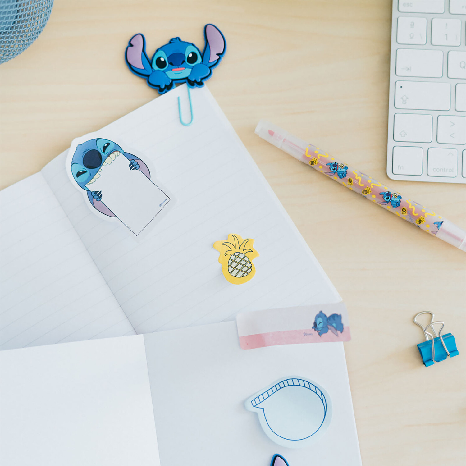 - содержит 4 фломастера, 2 металлических зажима, 6 липких маркеров в дизайне Stitch