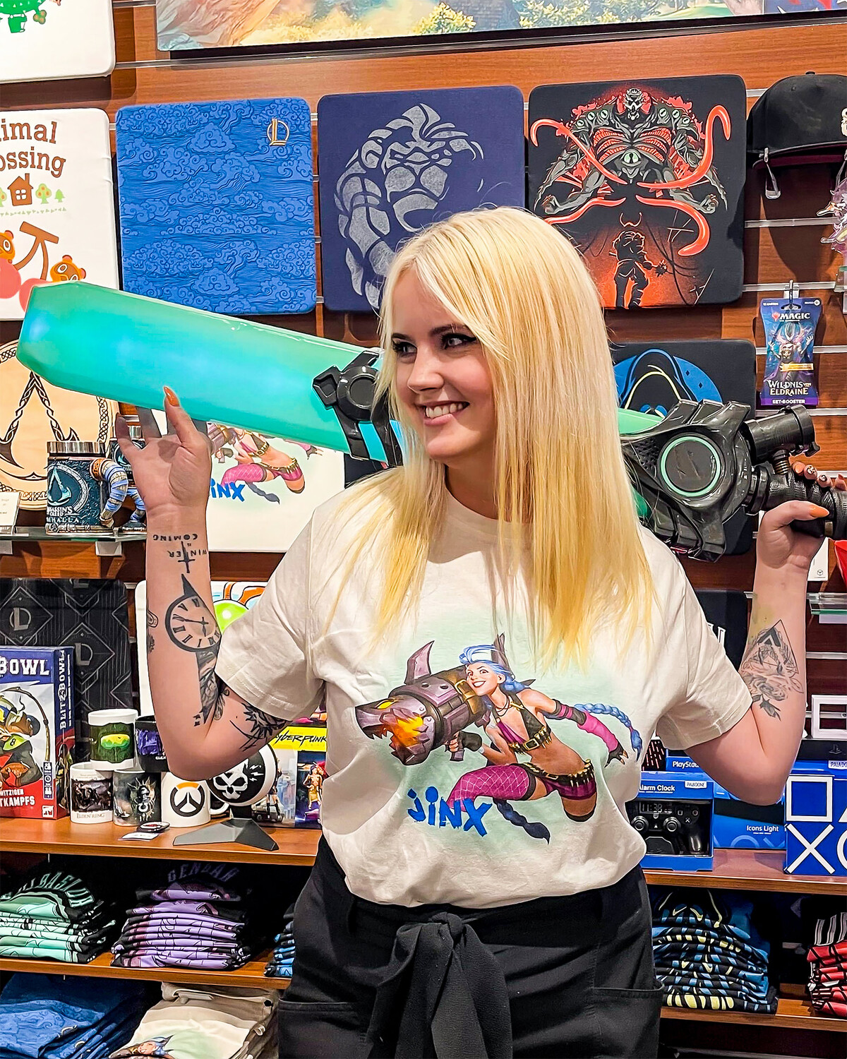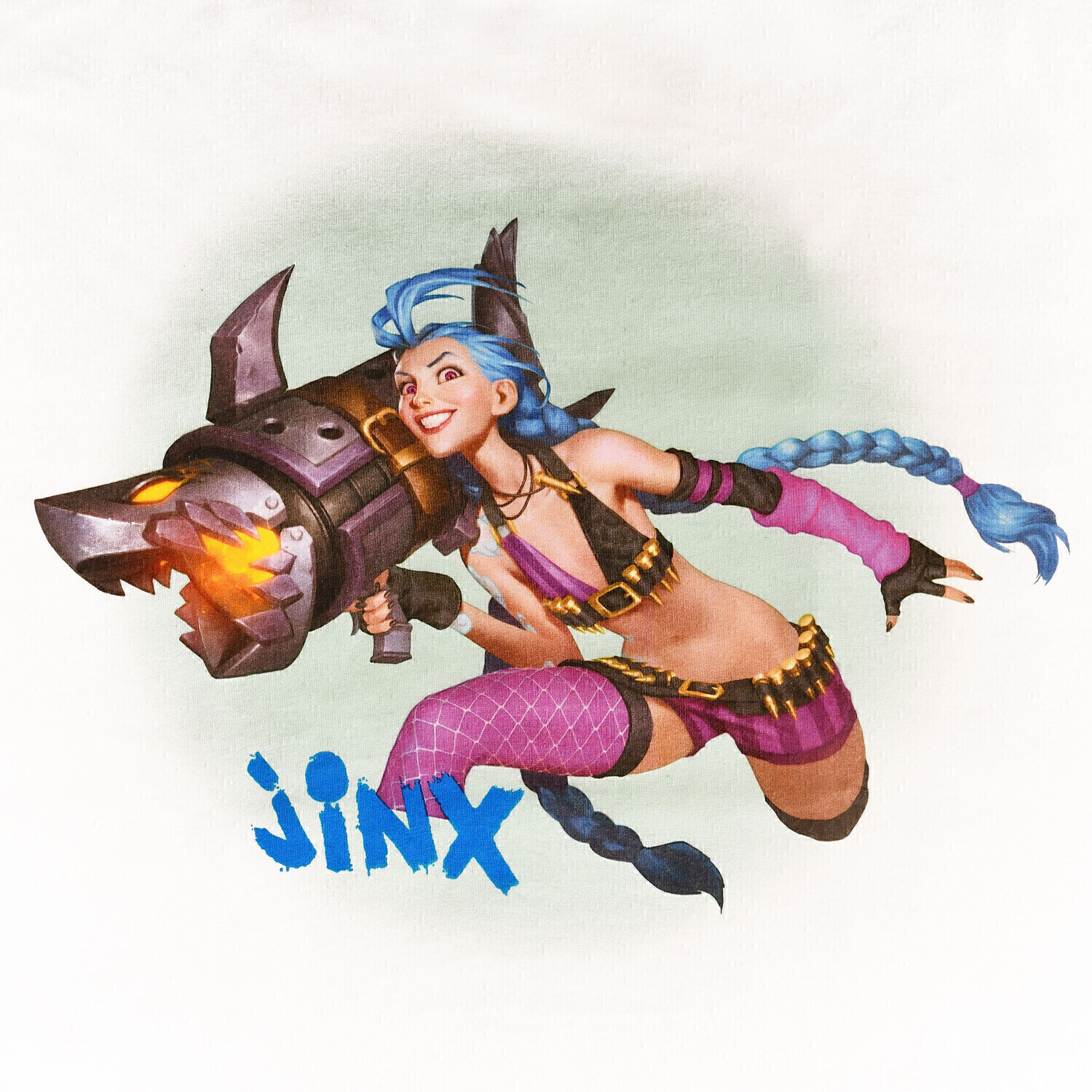 - Готовы ли вы шокировать противников своим стилем? Станьте звездой каждой LAN-вечеринки в этой официально лицензированной футболке League of Legends Jinx! Большой нагрудный мотив Jinx покажет всем, что вы настоящий фанат и не боитесь это показать. Благодаря круглому вырезу и прямому крою он идеально подходит для любого случая — независимо от того, активно ли вы играете или отдыхаете с друзьями. И лучшая часть? Это идеальный цвет, чтобы скрыть пятна от кофе! Так чего же вы ждете? Покажите свою любовь к Riot Games и LoL и получите идеальную футболку для фанатов. Инструкция по уходу: можно стирать при 30°C!