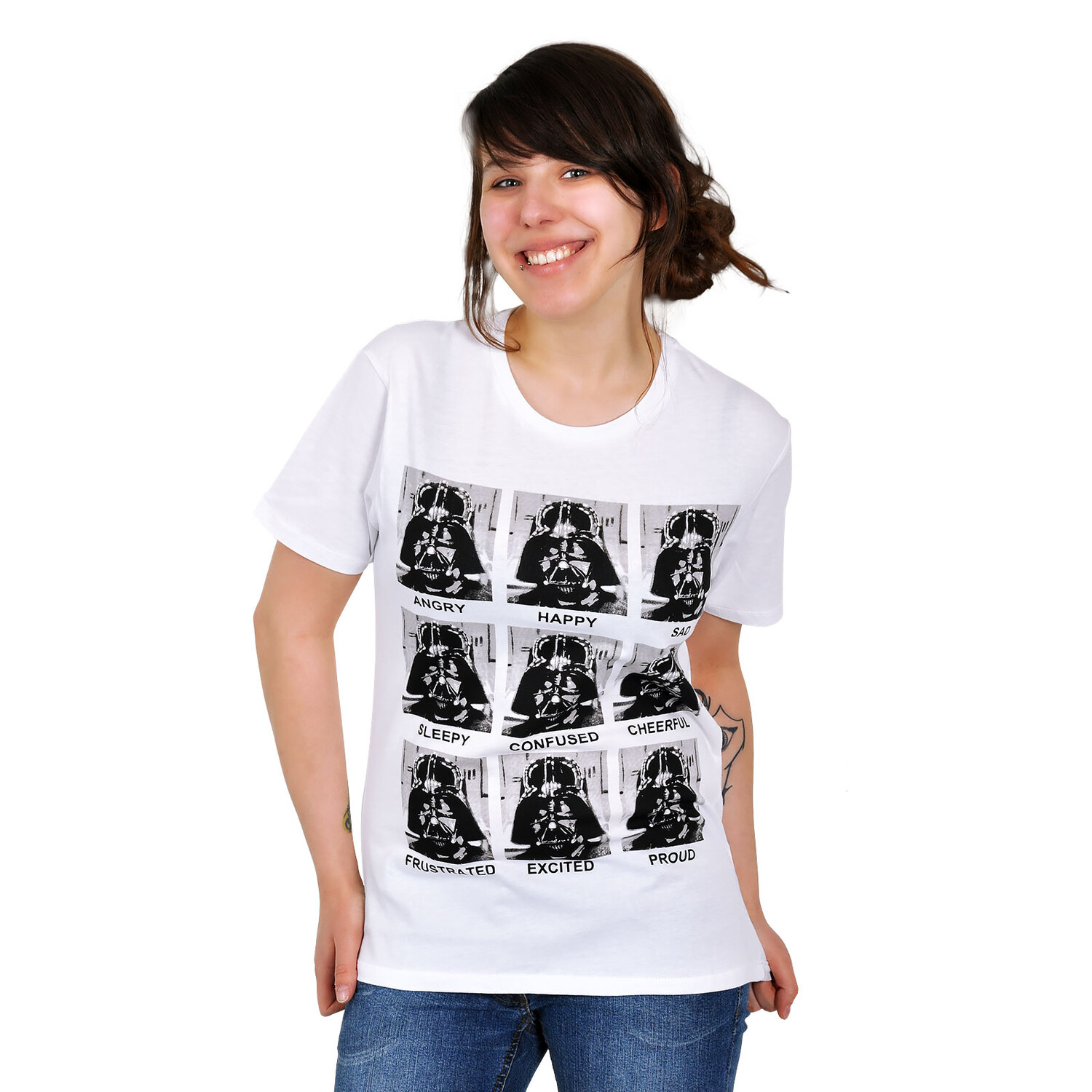 - Дарт Вейдер просто хвастается вам сюда Многоликий... Эти фотографии из «Звездных войн» точно не следует публиковать, потому что они доказывают: у темного правителя не только одно лицо! Теперь они даже увековечены в большом формате на этой футболке. Идеально подходит для поклонников, которые ищут особые мотивы «Звездных войн» и всегда хотят иметь оригинальную рубашку.