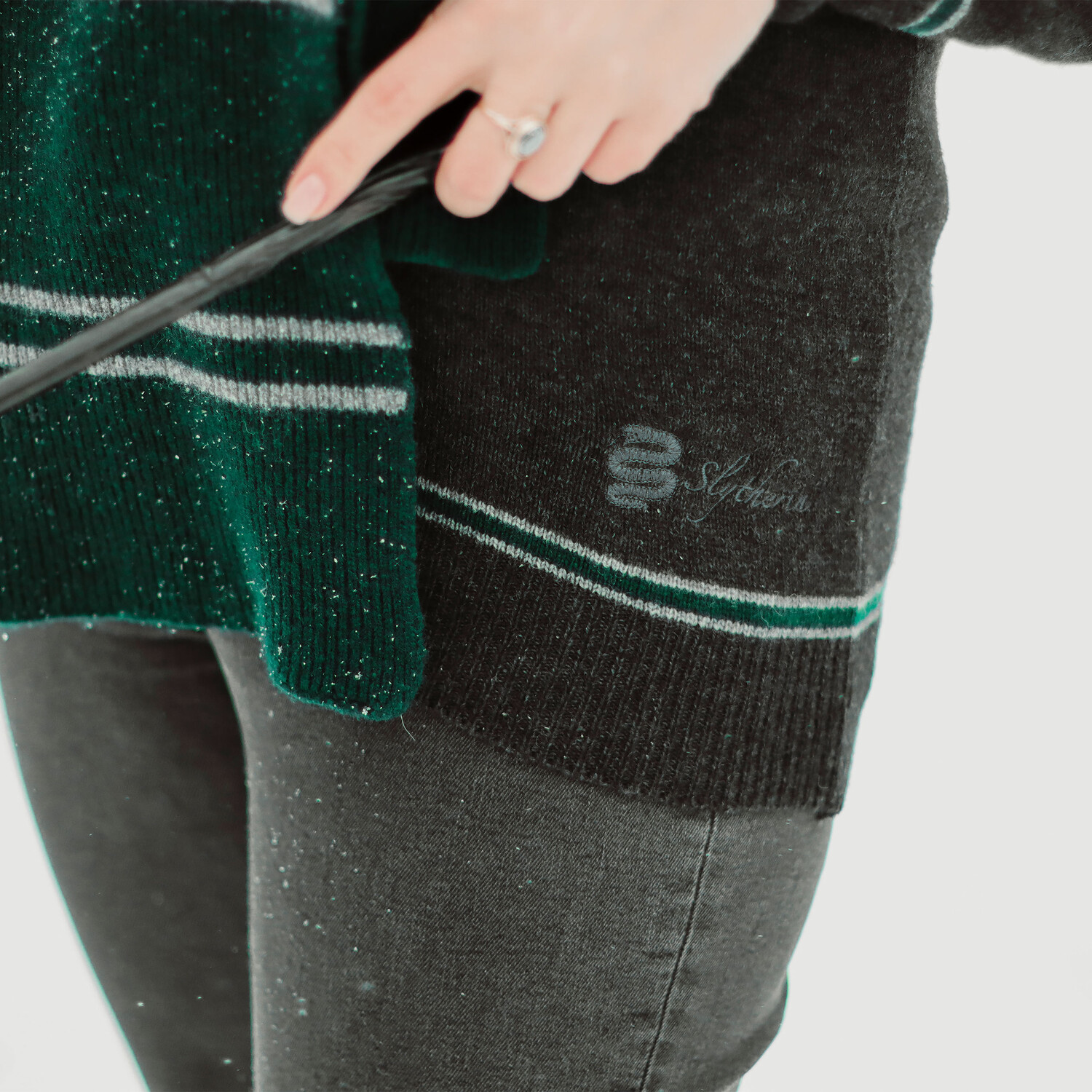 - Одежда, готовая к съемкам в фильмах для поклонников Гарри Поттера! В этом кардигане вы носите часть оригинальной формы Хогвартса, как актеры в фильмах. Уютный, теплый кардиган привезен прямо из Шотландии от поставщика экипировки съемочной группы о Гарри Поттере. Волшебный предмет одежды изготовлен из чистой овечьей шерсти и имеет тонкую декоративную полоску. Кроме того, кардиган украшен гербом Слизерина и надписью Слизерина. Качественный кардиган прекрасно сочетается с джинсами и юбками, подходит для повседневной жизни, на торжествах и конечно же на всех мероприятиях в стиле Гарри Поттера.
