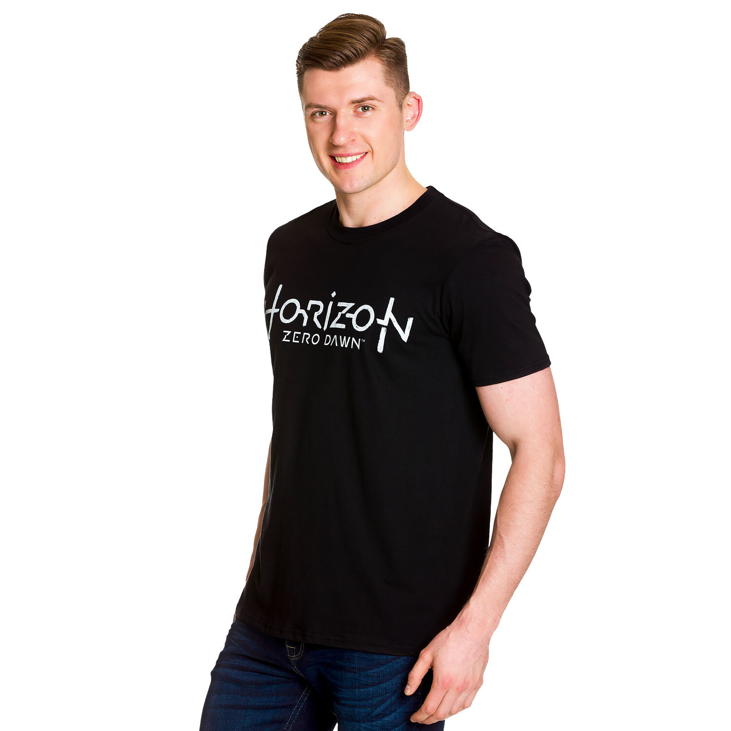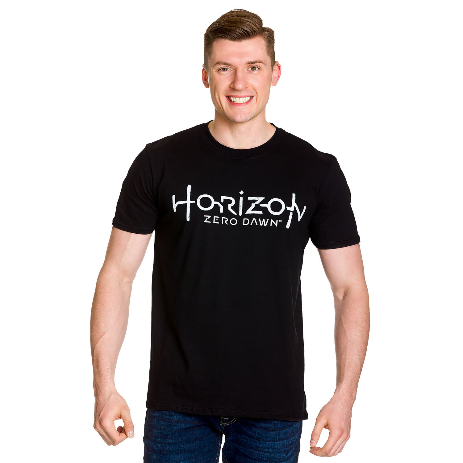 - для всех любителей экшена Для ролевой игры Horizon Zero Dawn у нас есть идеальная футболка! С официальным логотипом игры на лицевой стороне вы готовы окунуться в постапокалиптический мир игры. Классический прямой крой и удобный круглый вырез обеспечивают идеальную посадку и высокий комфорт при ношении. Футболка полностью черная, чтобы оптимально представить интересный логотип. Покажите своим друзьям, что вы настоящий фанат Horizon, и дополните свой наряд этой крутой футболкой!