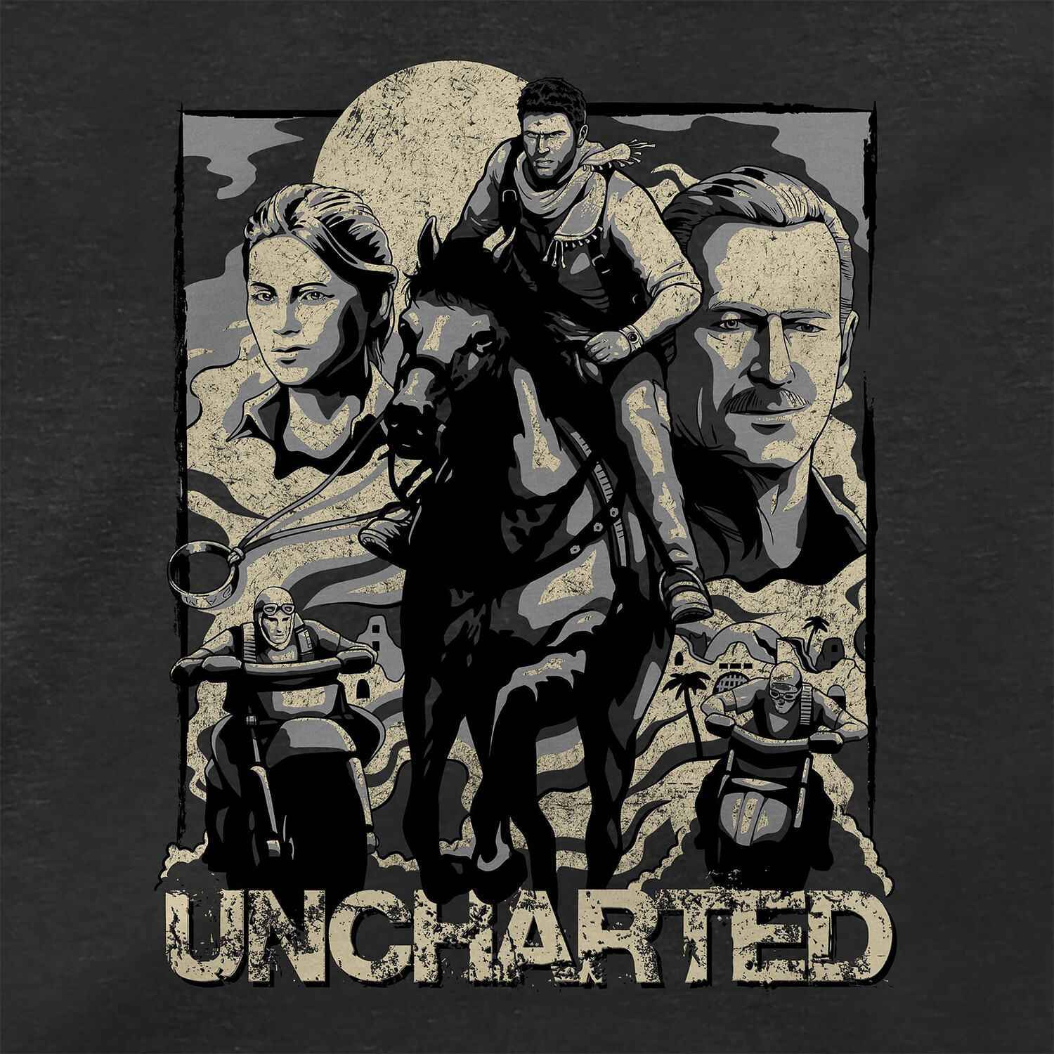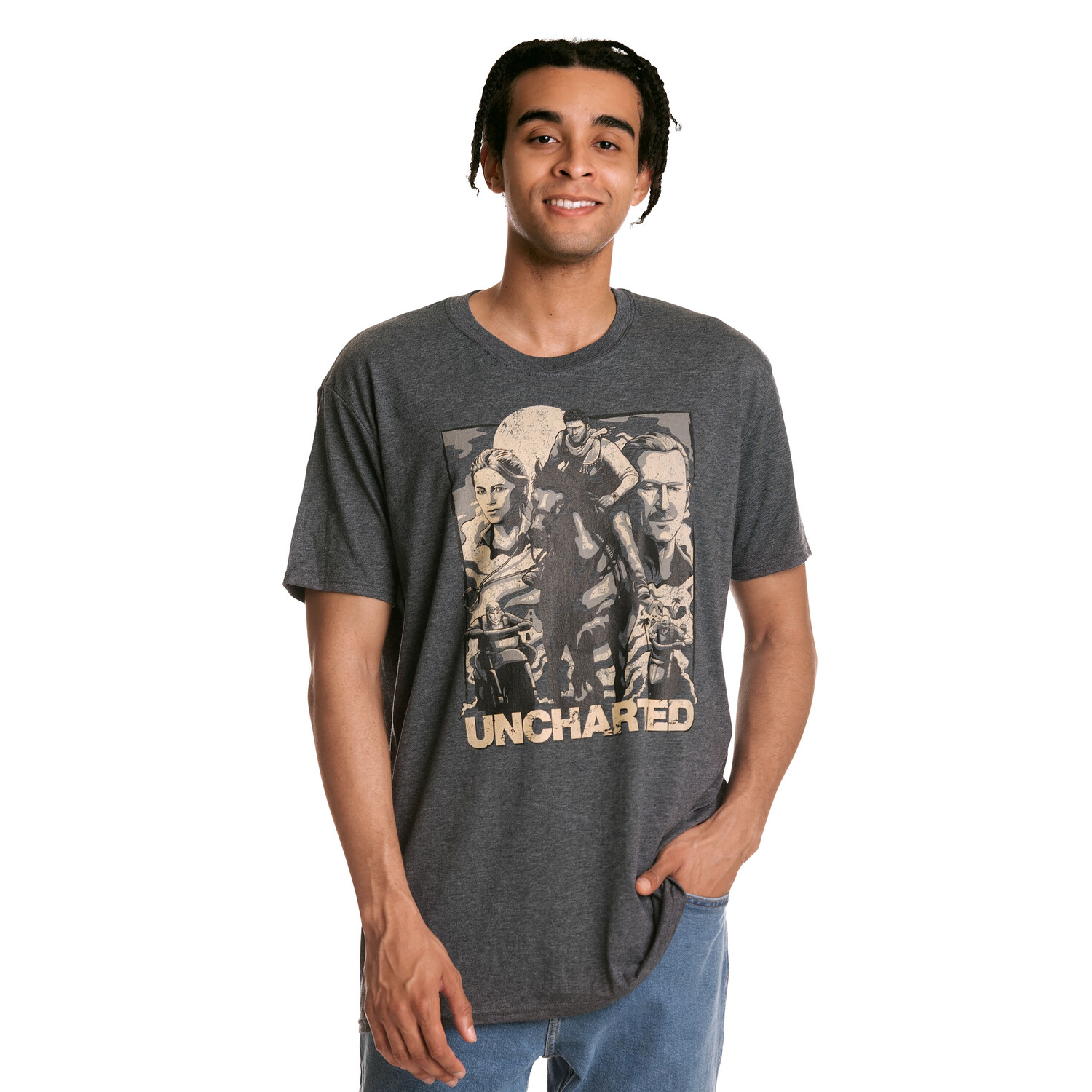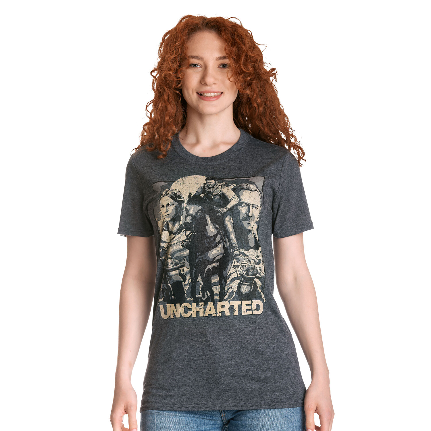 - Готовы ли вы отправиться в эпическое приключение? С официально лицензированной футболкой Uncharted 4: A Thief's End вы хорошо экипированы! Большой мотив изображает характерных персонажей Натана Дрейка, Елену и Виктора/Салли во всей их красе. Благодаря прямому крою и круглому вырезу эта рубашка не только очень удобна, но и привлекает внимание. Серый пестрый цвет сочетается с любыми джинсами и сделает вас абсолютной законодательницей моды. Покажите всем, что вы настоящий фанат игр, и погрузитесь в мир Uncharted. С этой футболкой вы всегда на правильной стороне. Инструкция по уходу: Можно стирать при 40°C.